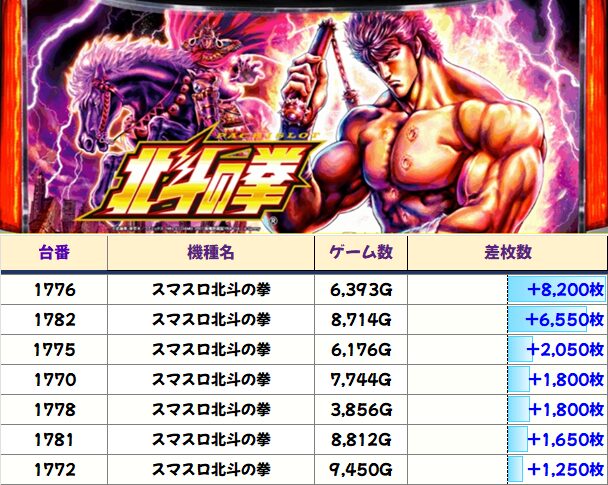 スマスロ北斗の拳(8/16台+)➡平均+688枚