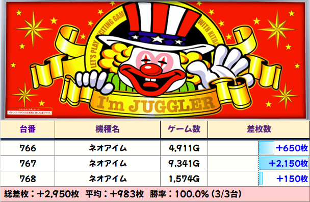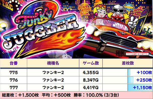 3か所中2か所が全台プラスなど結果を残していました!