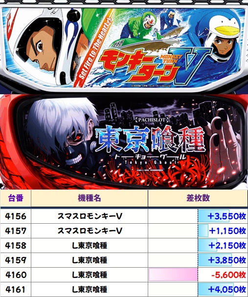 【6台並び⑥】モンキーV&東京喰種(4156-4161番台)