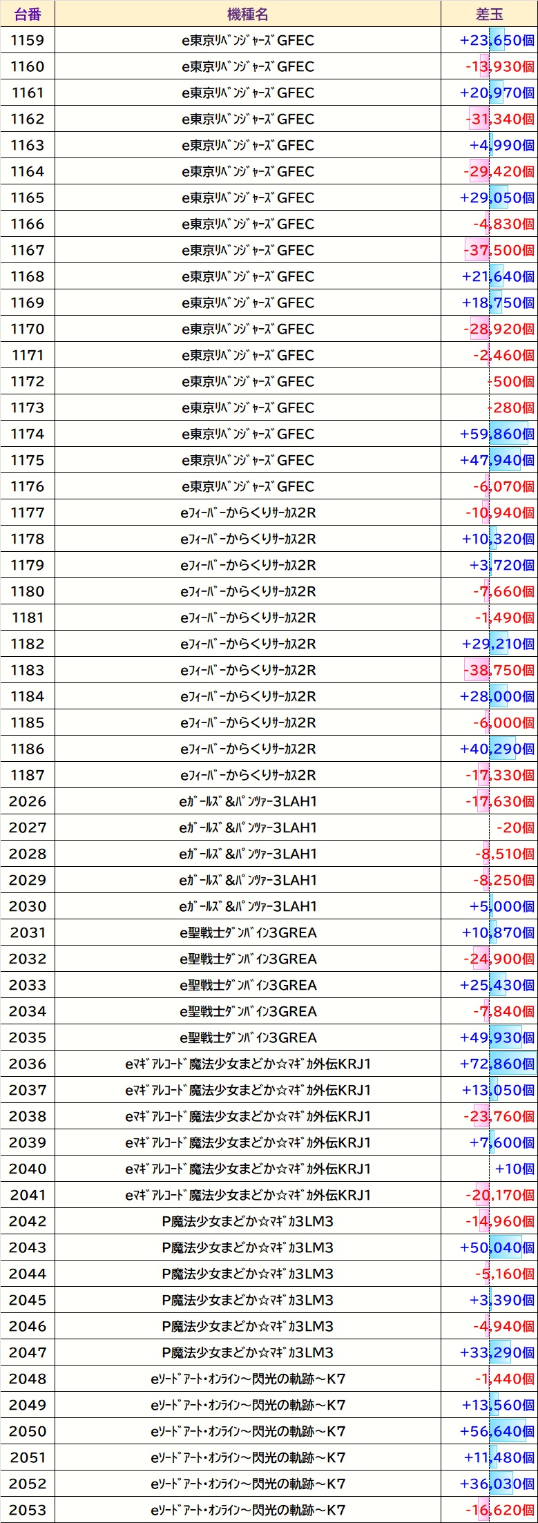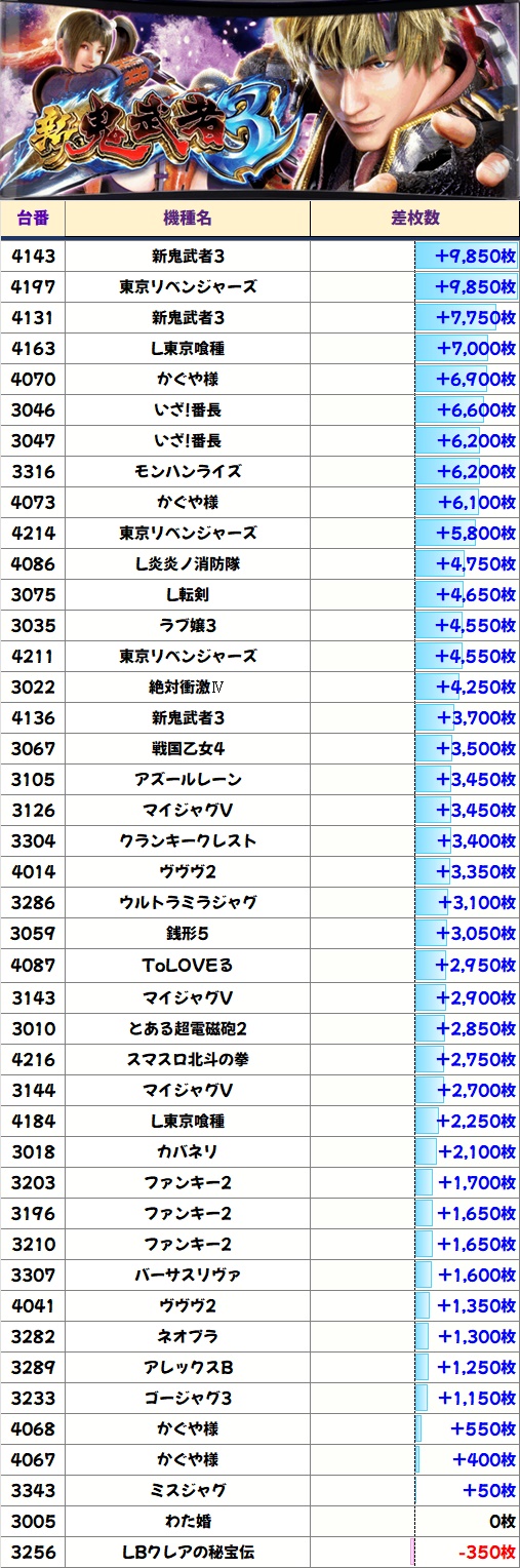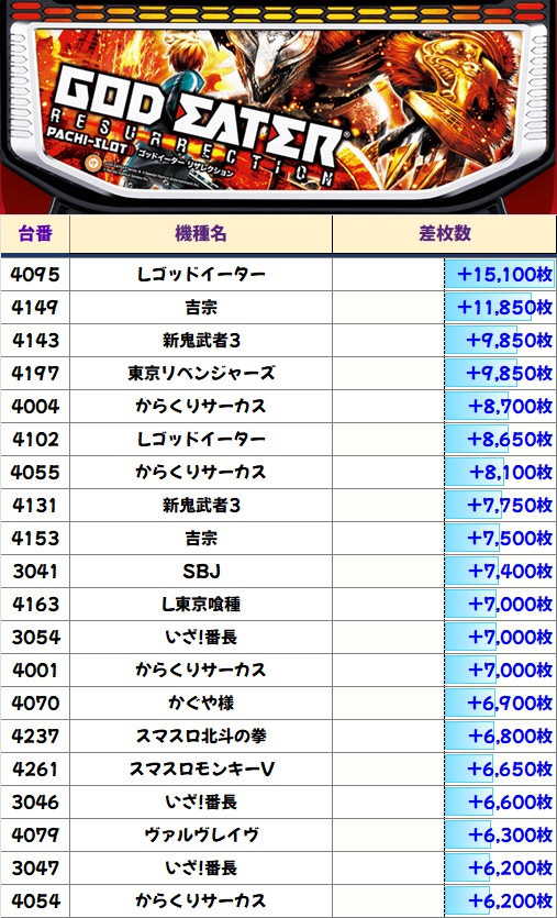 TOP20は+6000枚以上に加え、万枚オーバー台は2台出現!質の高い優秀台ゆえの好結果となりましたね!