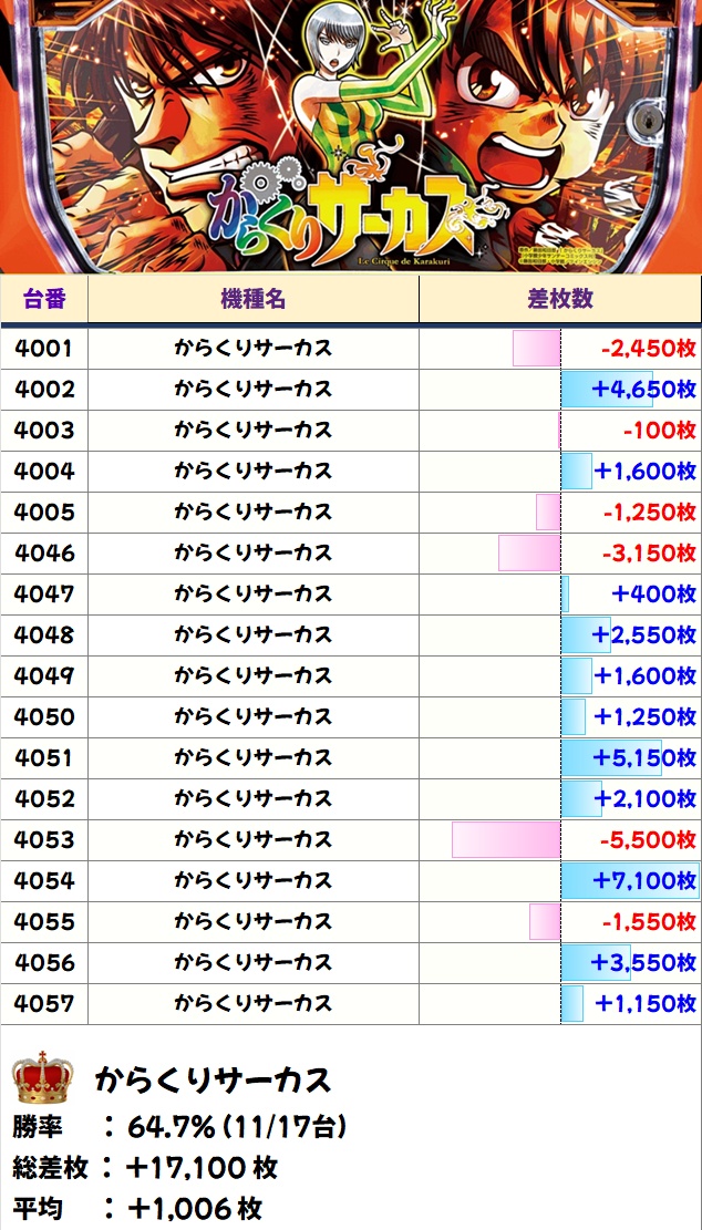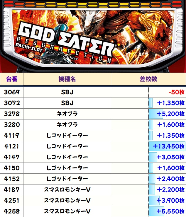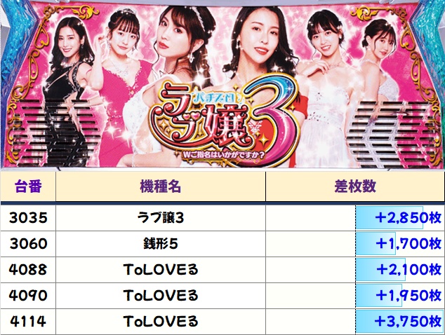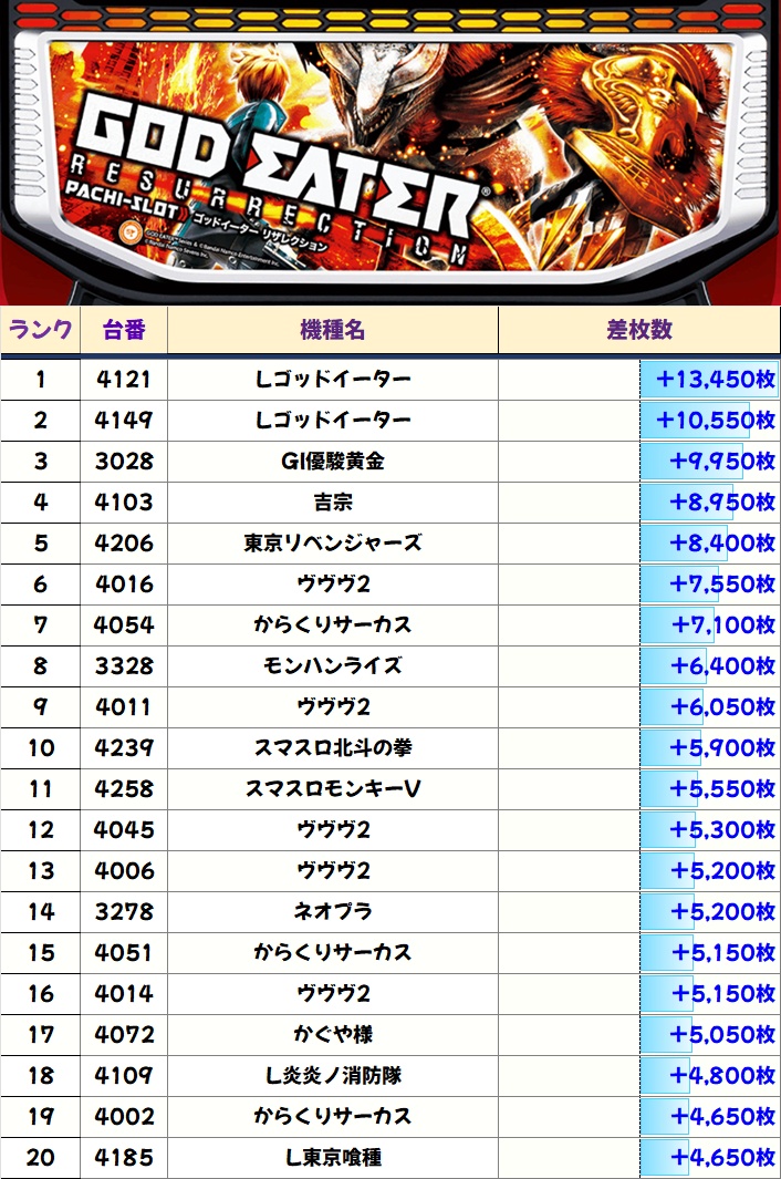TOP20は+4500枚以上に加え、万枚オーバー台は2台出現!質の高い優秀台ゆえの好結果となりましたね!
