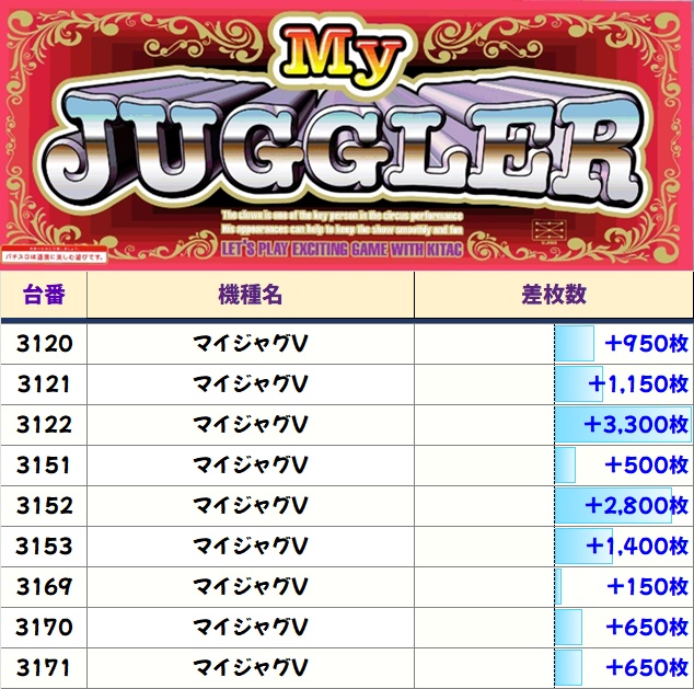 【3台並び】マイジャグ(3120-3122・3151-3153・3169-3171番台)