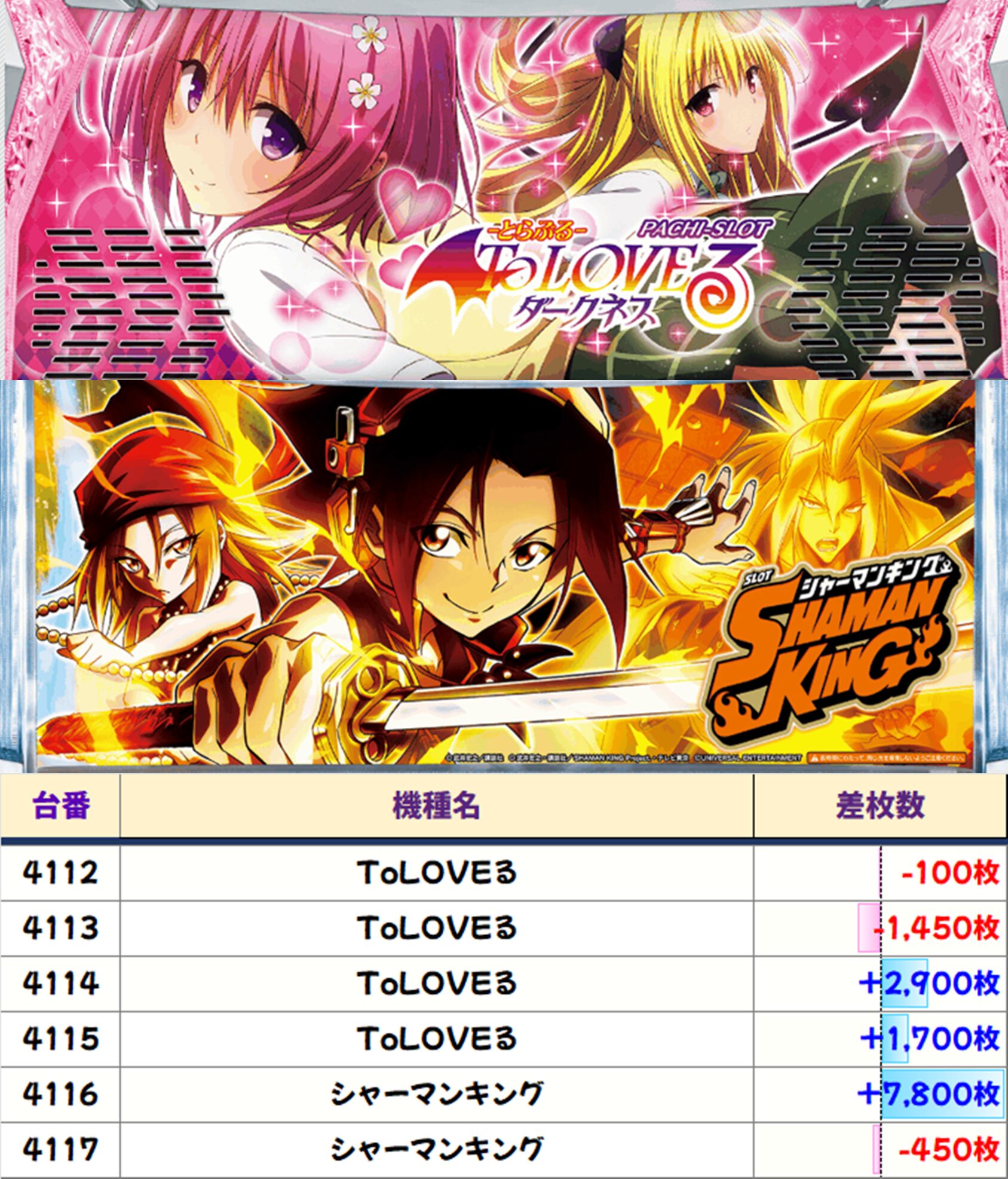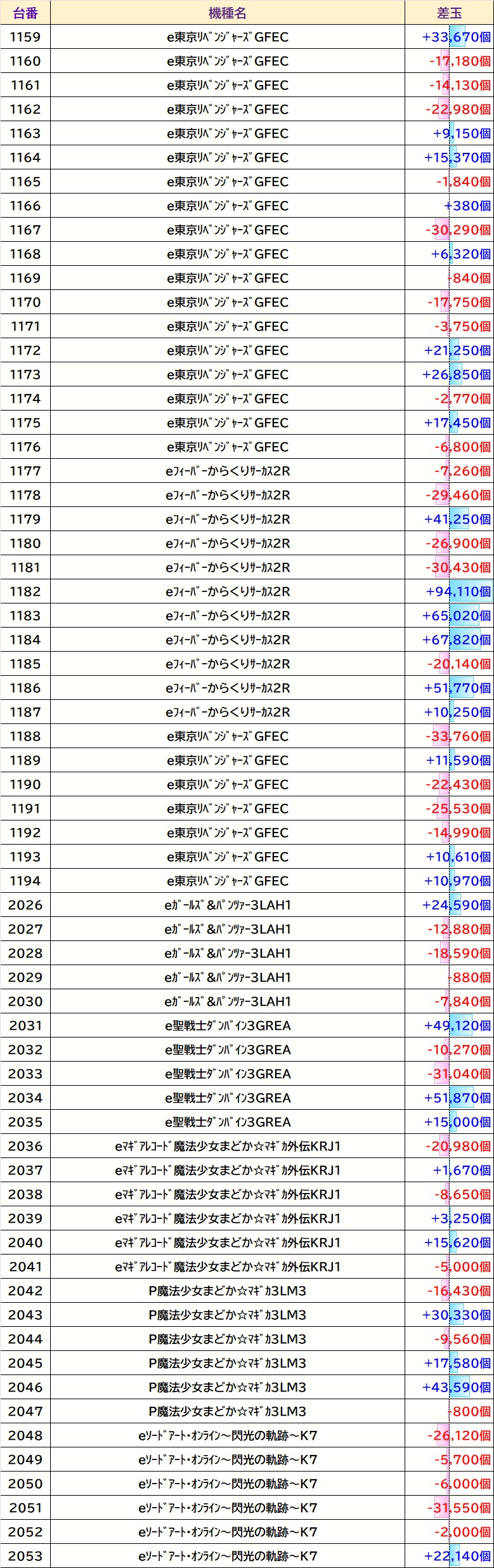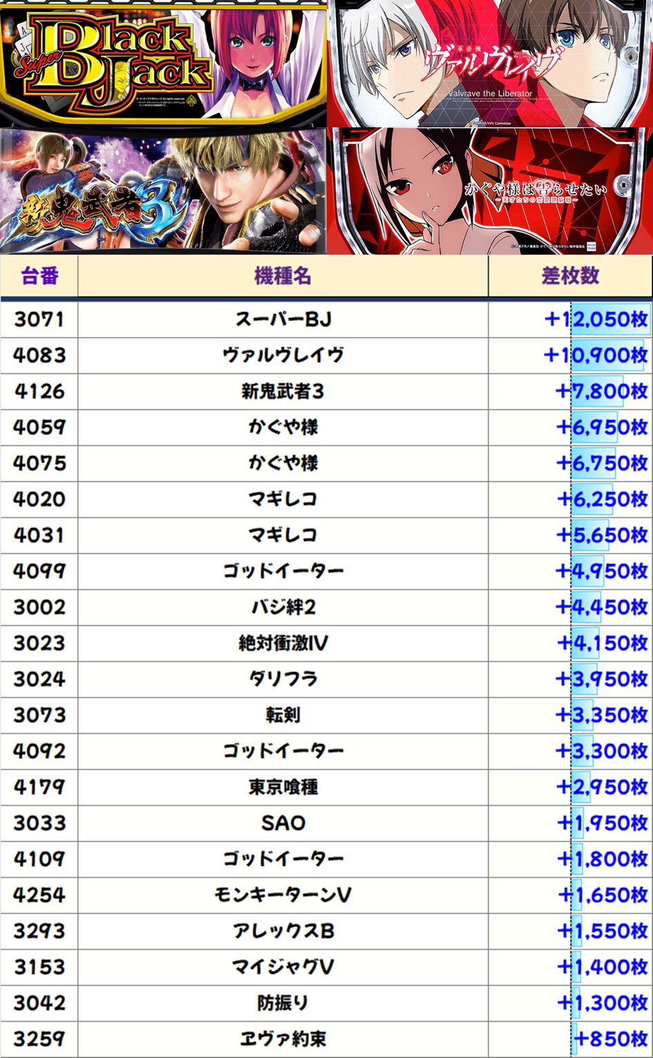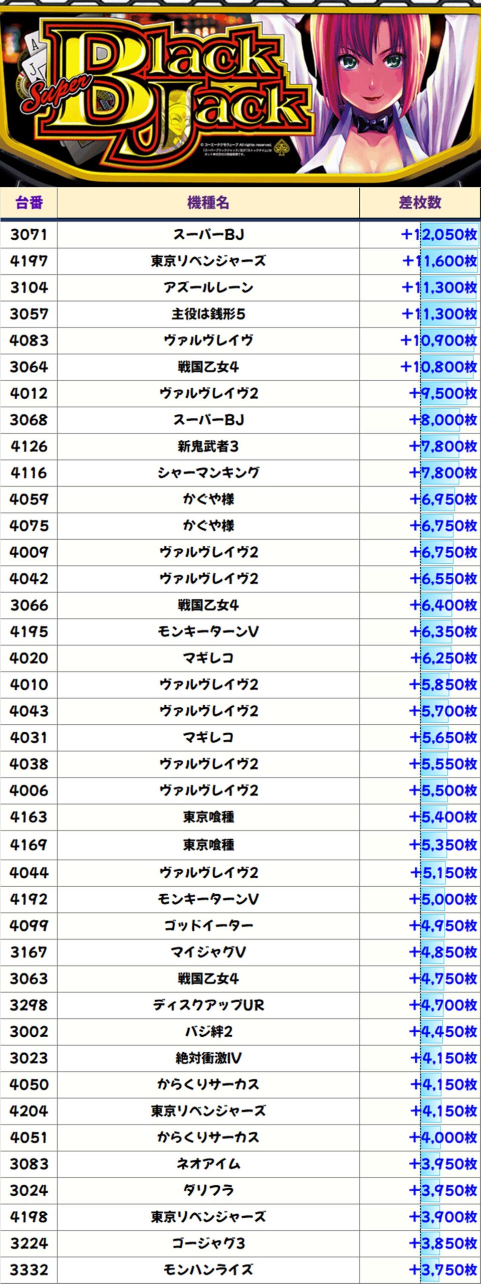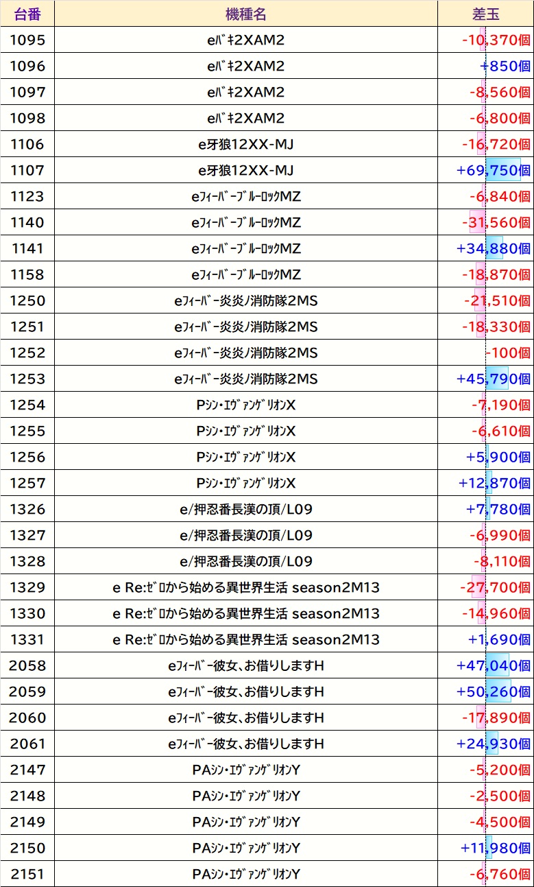 店内差枚数ランキング