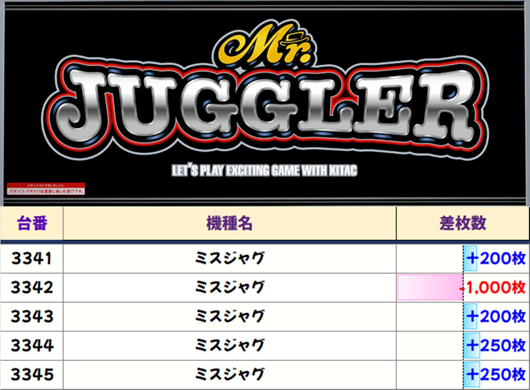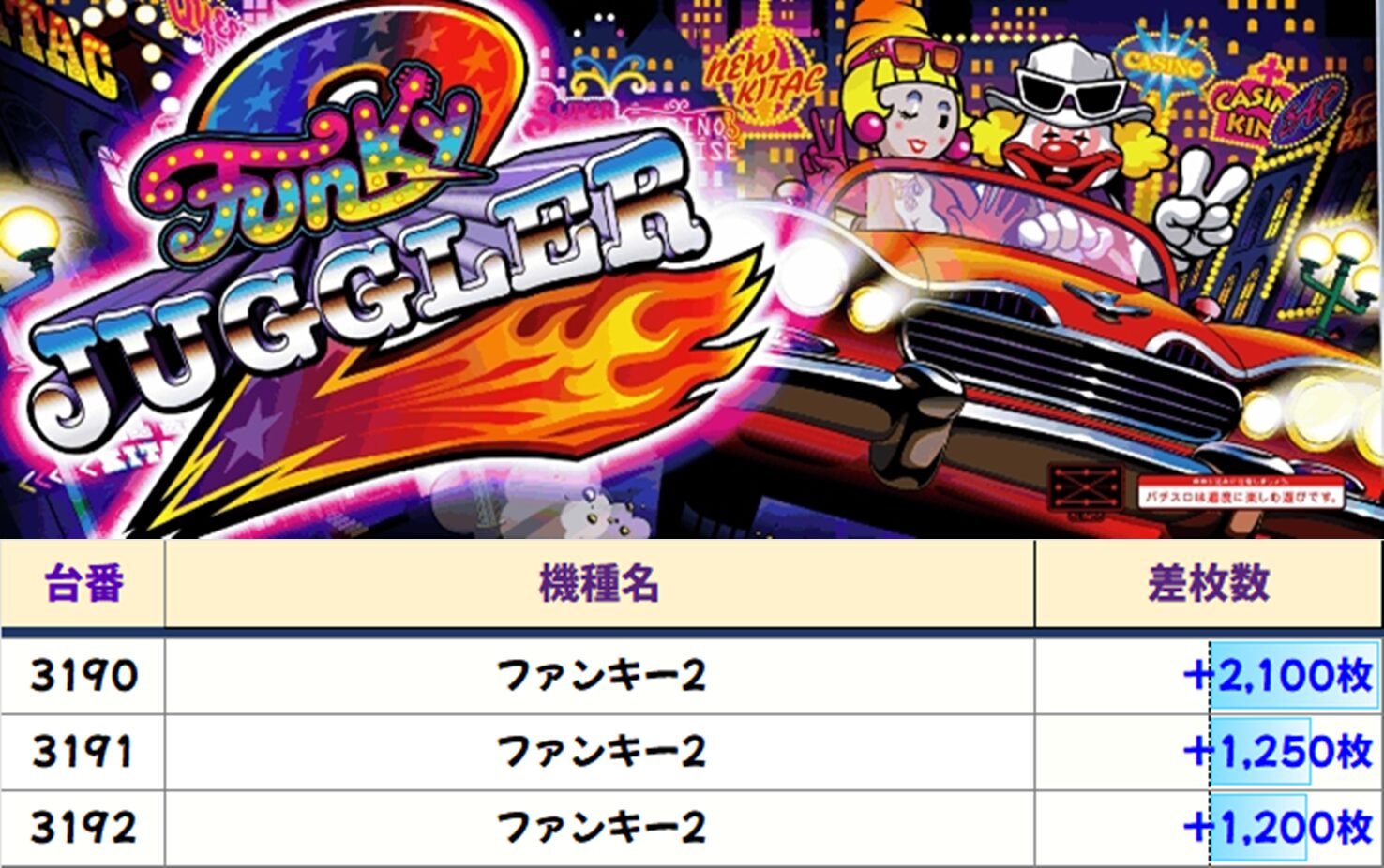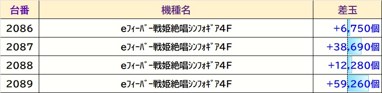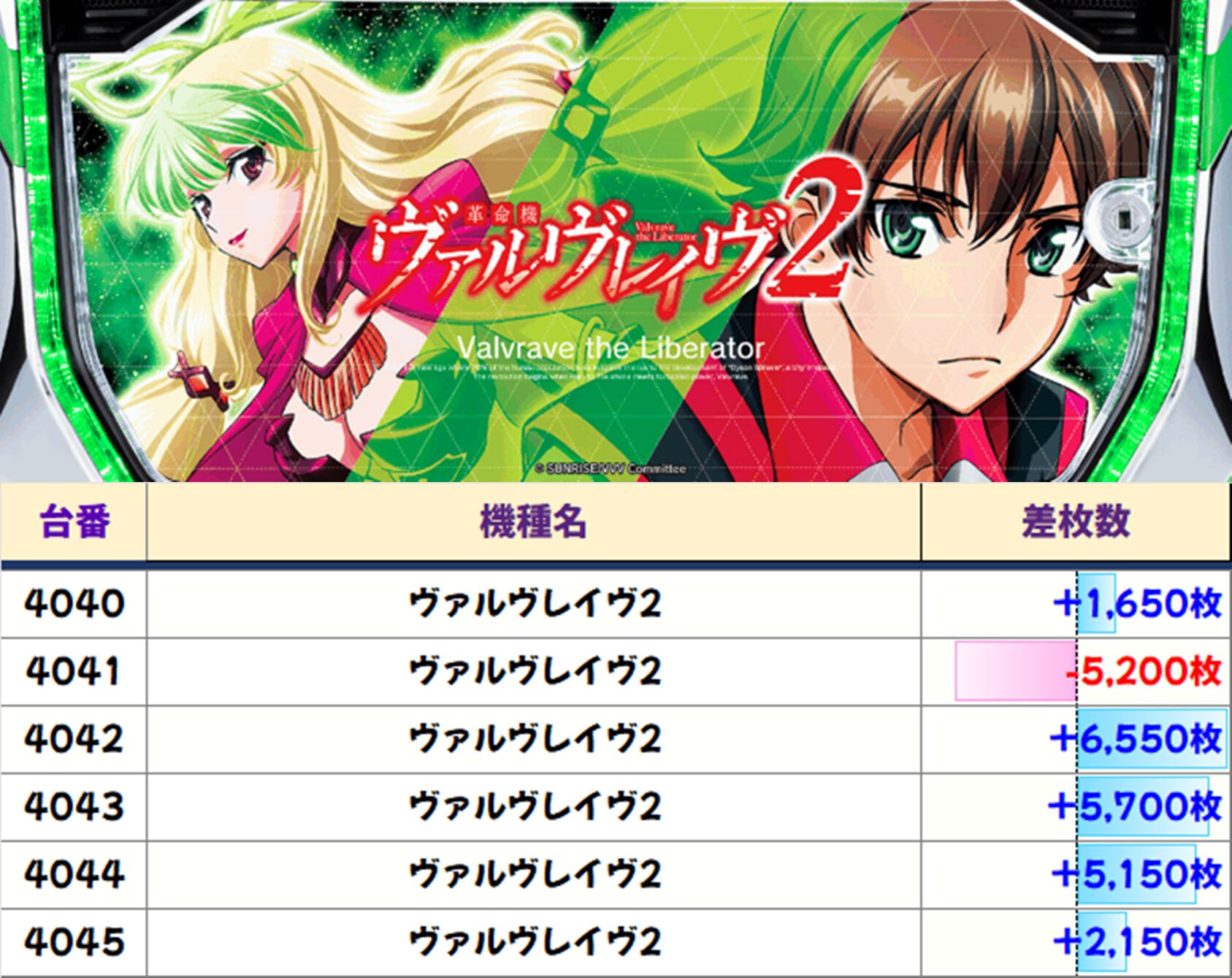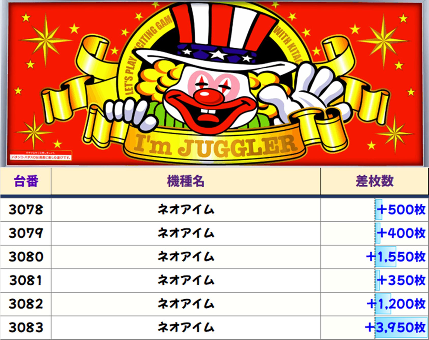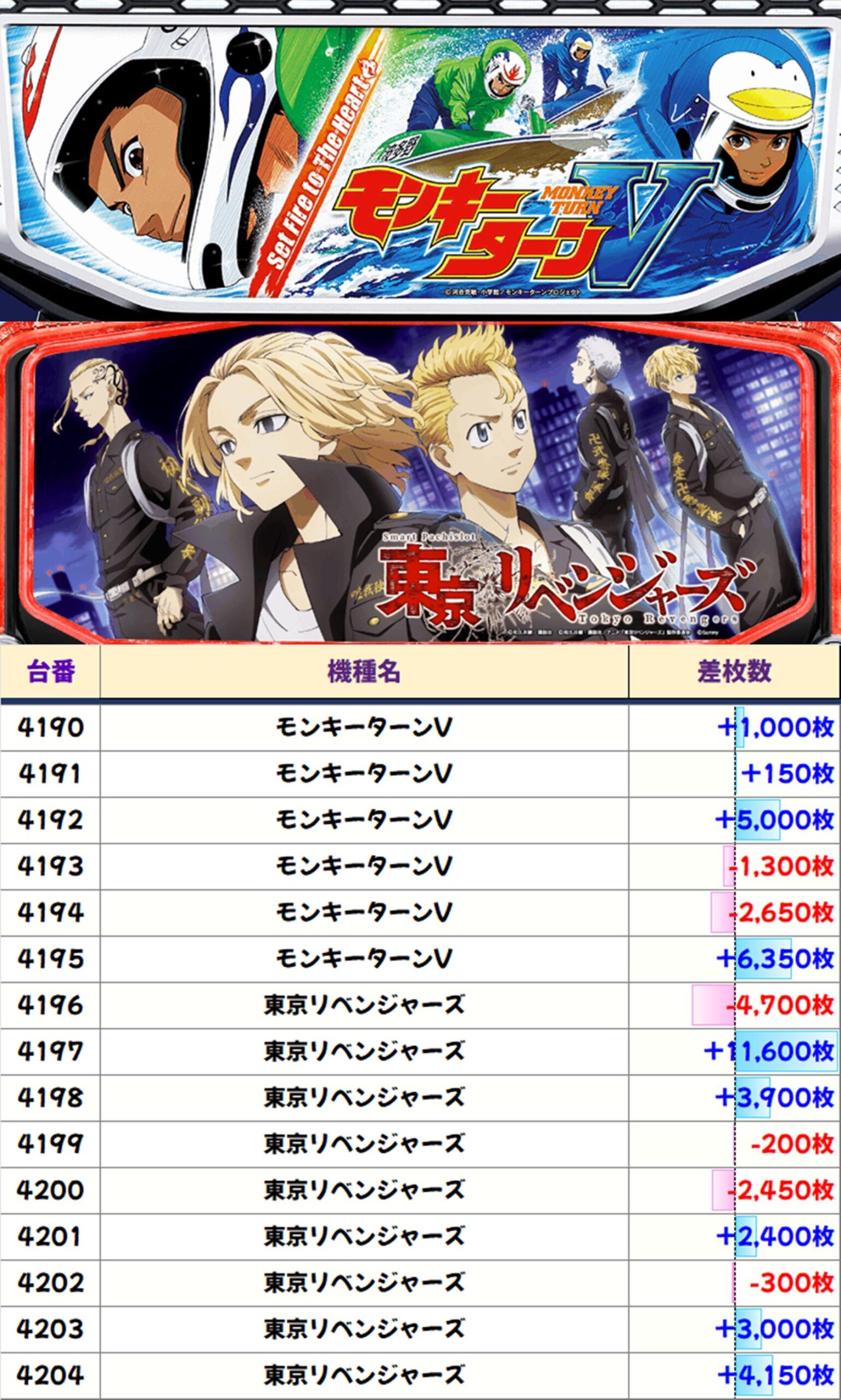 店内差枚数ランキング