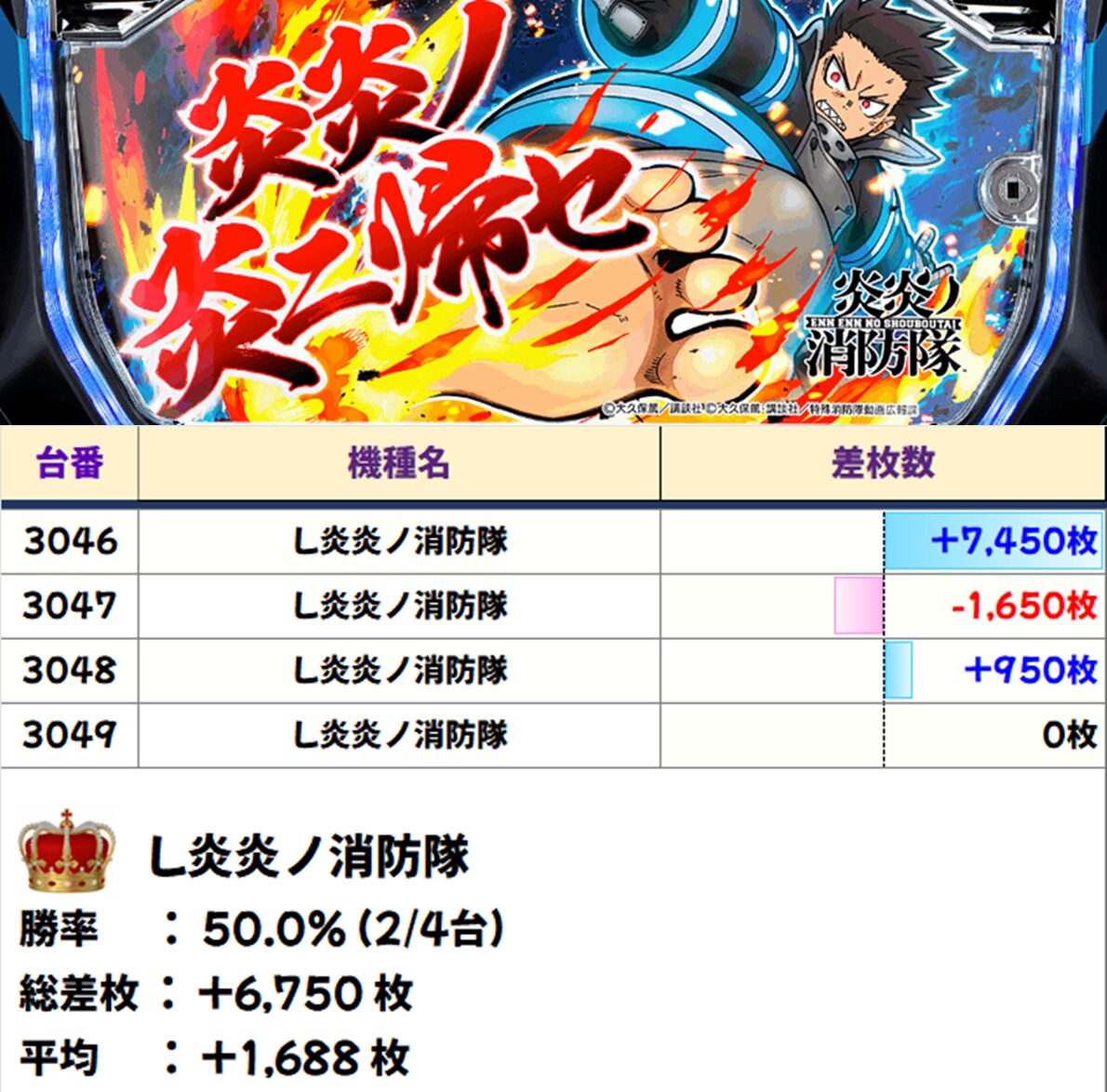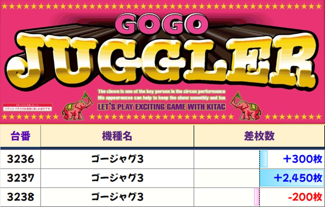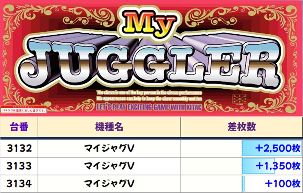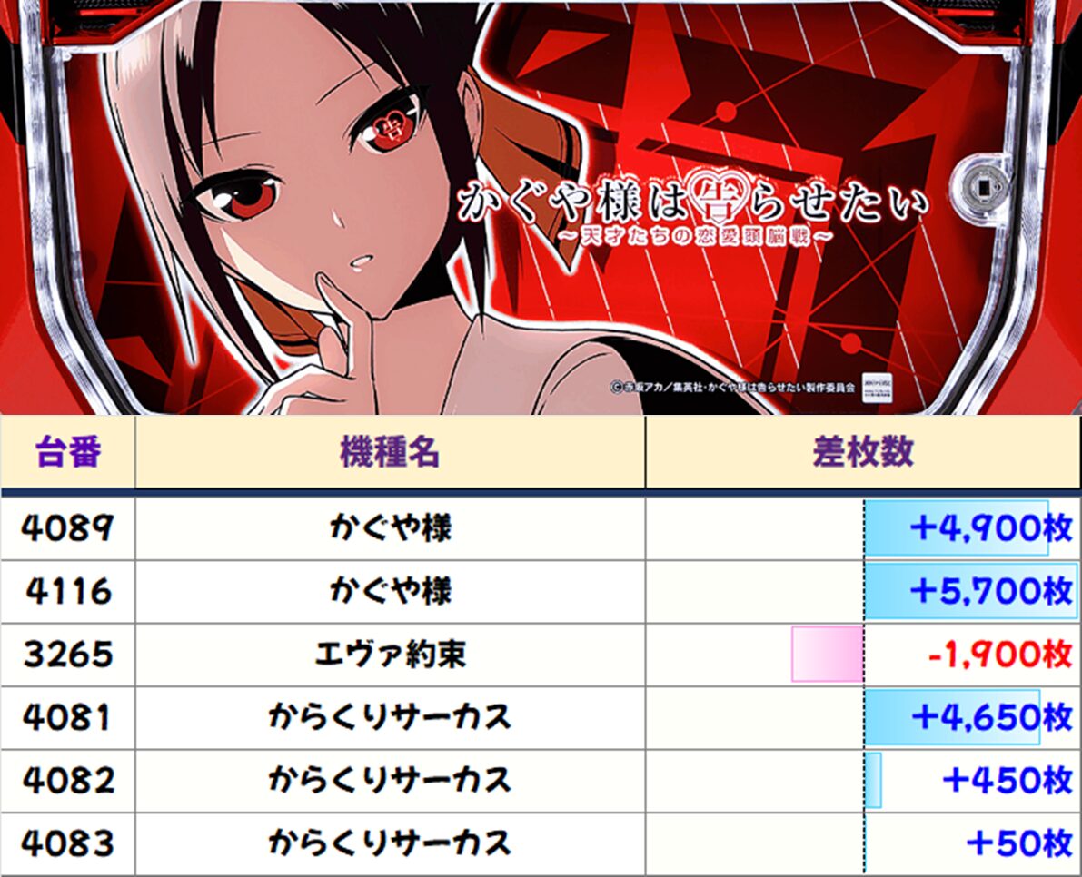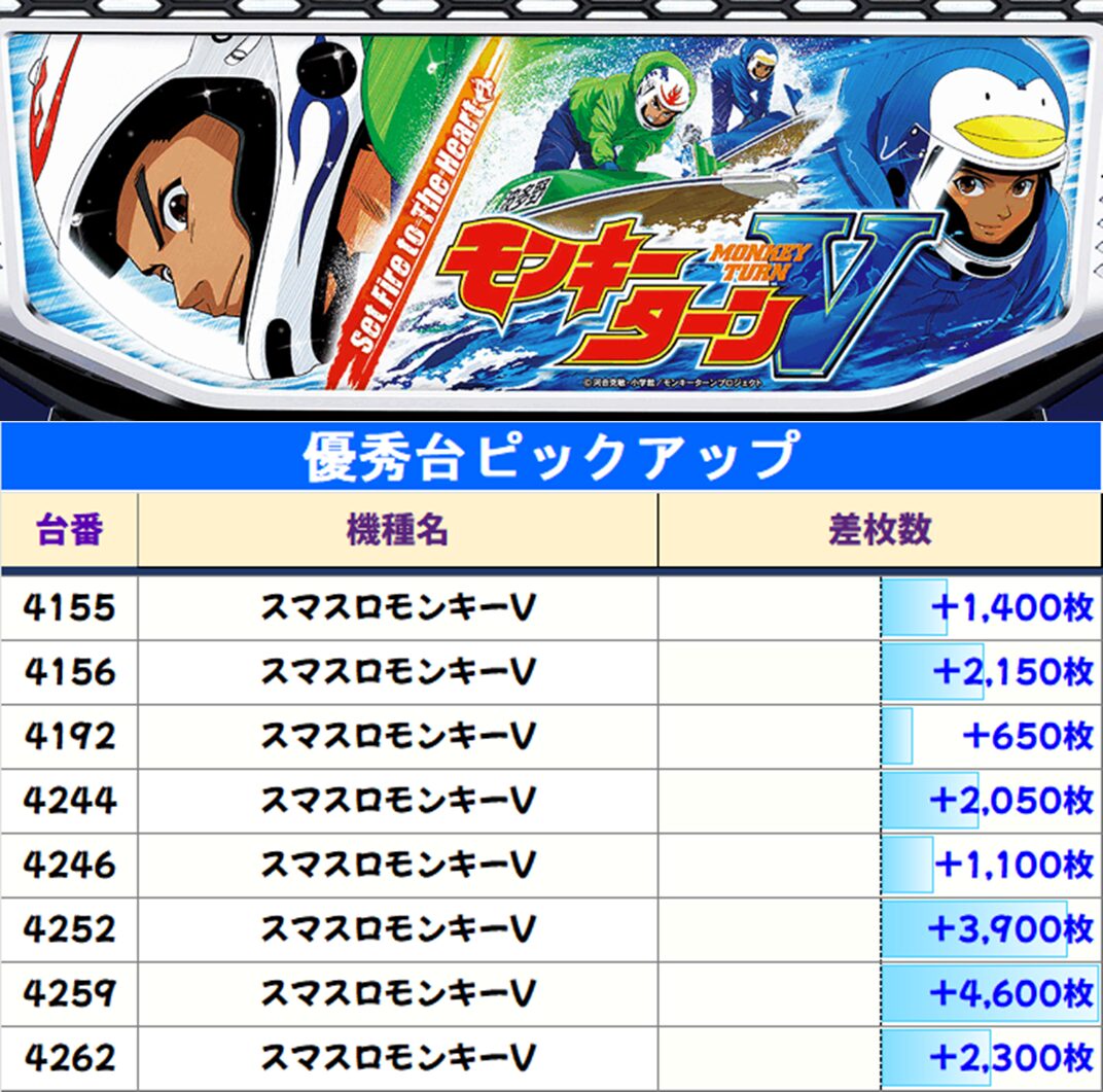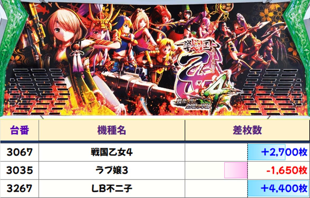 全4台中3台プラス、3台とも+5000枚overと圧巻の結果でした!