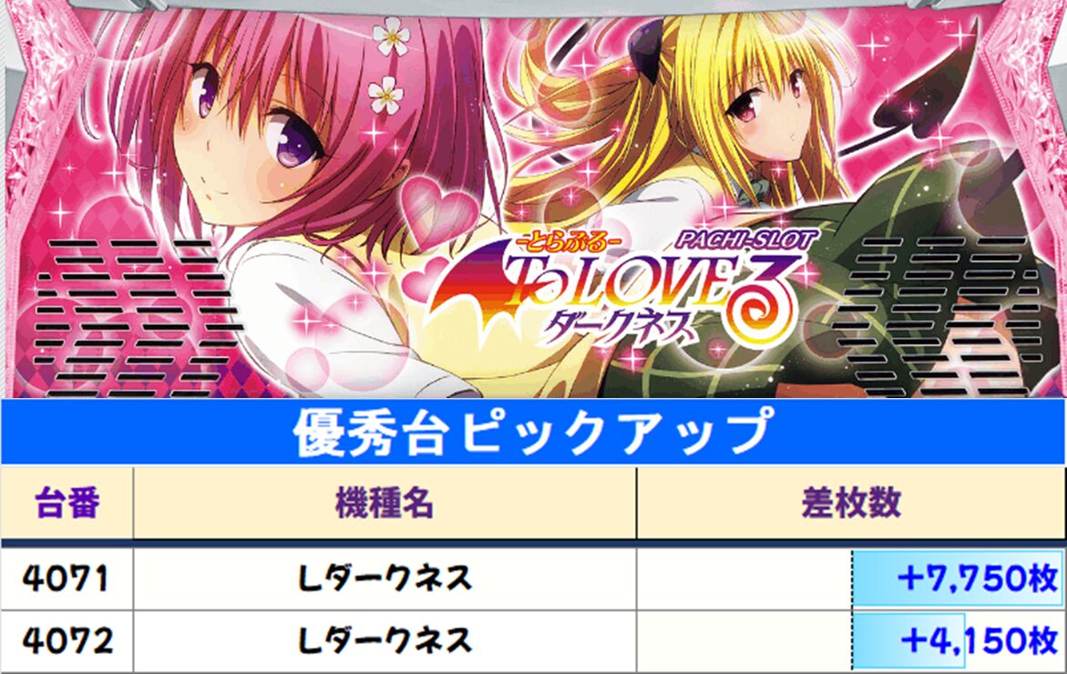 【ToLOVEる】も全5台で1/3の仕掛けアリ!こちらも優秀台は大量出玉を獲得!