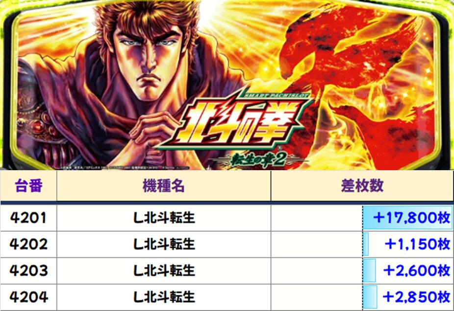 最新台の【北斗転生】にも4台並び!確定報告もあったようです。