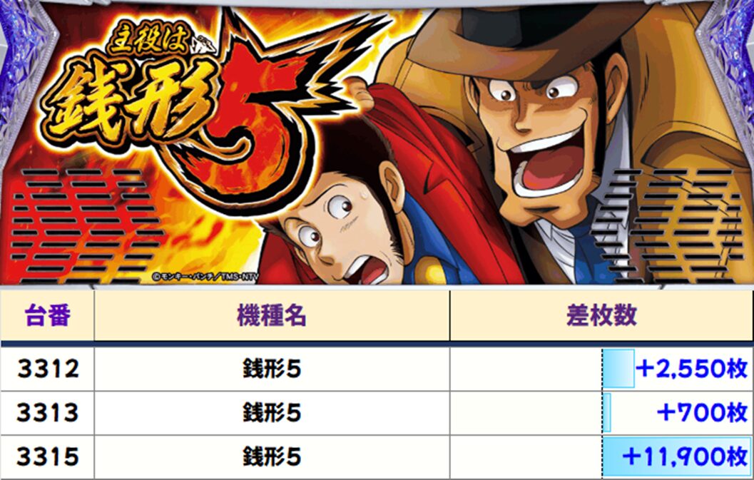 平和系機種から先週に続き、【銭形5】1/2以上の超高配分