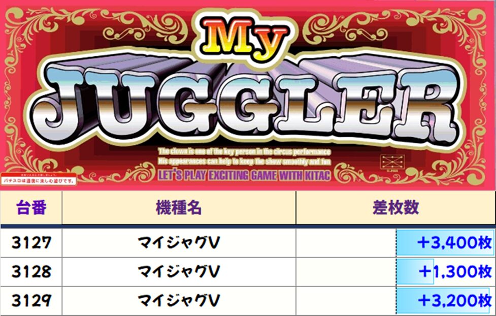 全4台中3台プラス 平均+3,250枚と好結果でした!