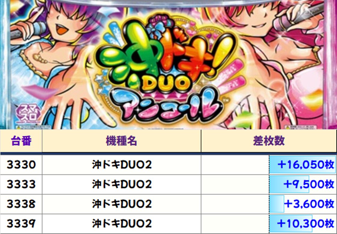今回PICKする沖ドキDUO2から万枚オーバー2台を筆頭に大量出玉を複数確認!