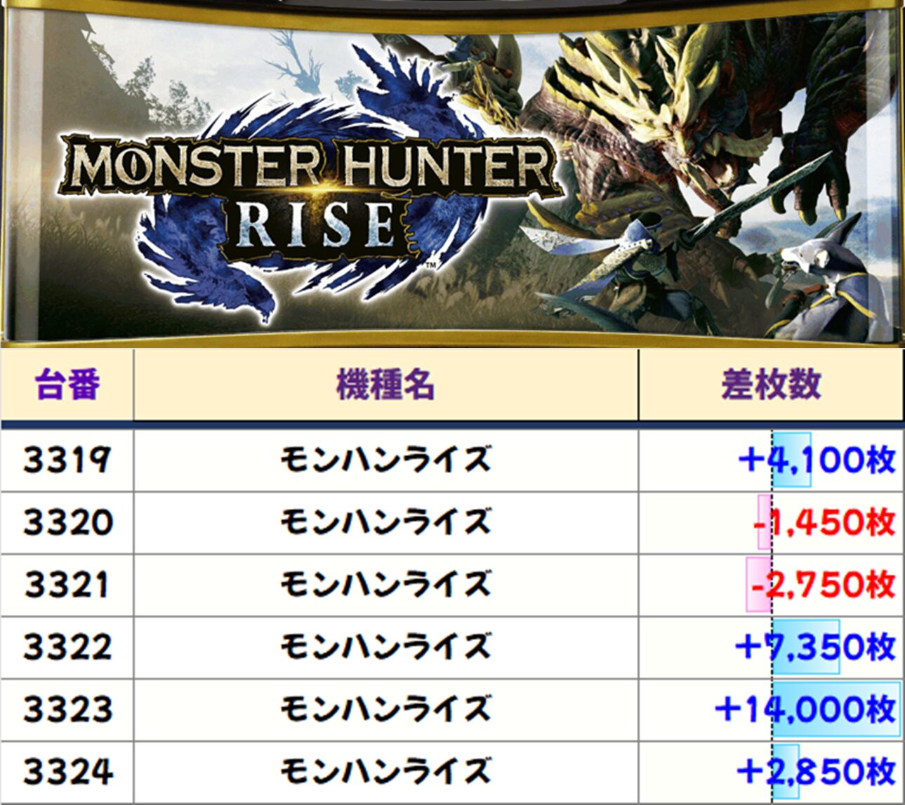 【並び仕掛け④】モンハンライズ(3319-3324番台)【平均+4,016枚】