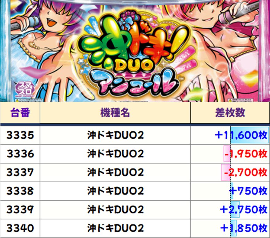 【並び仕掛け⑤】沖ドキDUO2(3335-3340番台)【平均+2,050枚】