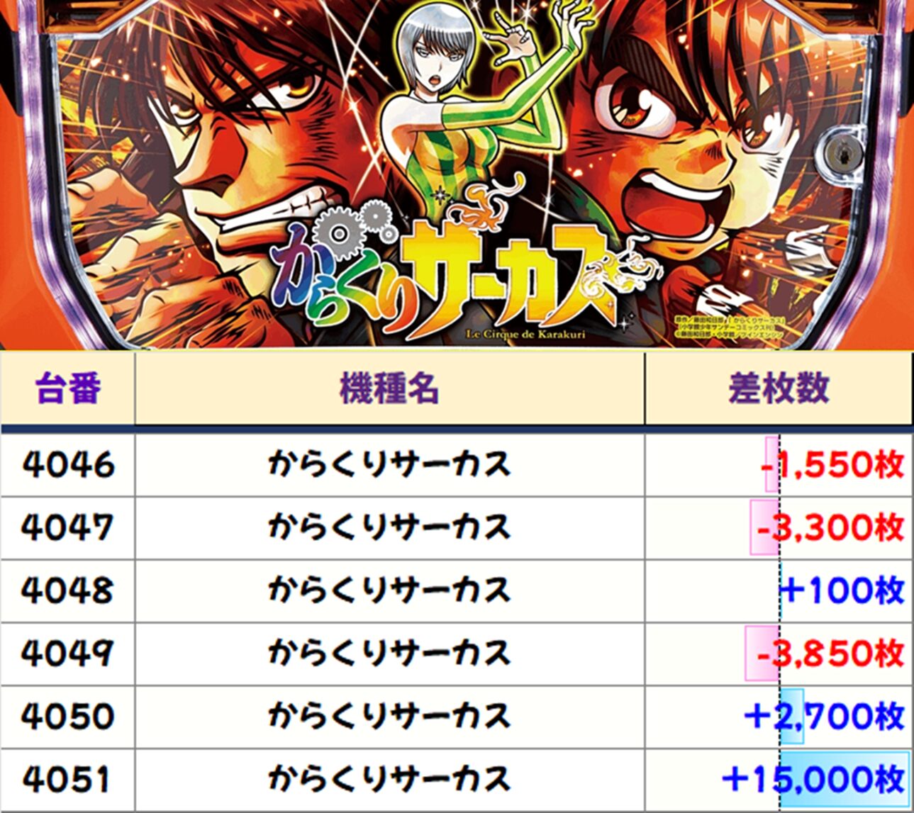 【並び仕掛け⑦】からくりサーカス(4046-4051番台)【平均+1,517枚】