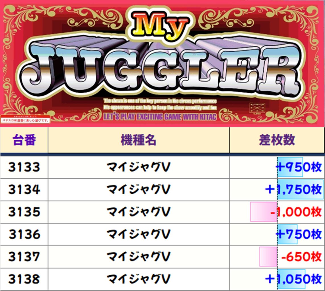 【並び仕掛け⑩】マイジャグⅤ(3133-3138番台)【平均+475枚】