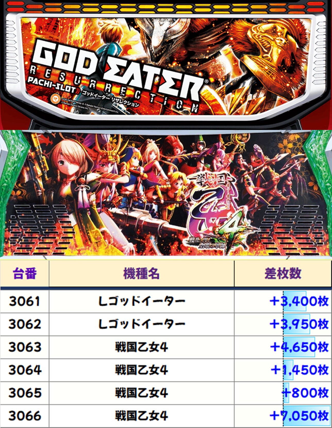 【並び仕掛け②】ゴッドイーター-戦国乙女4(3061-3066番台)【平均+3,550枚】