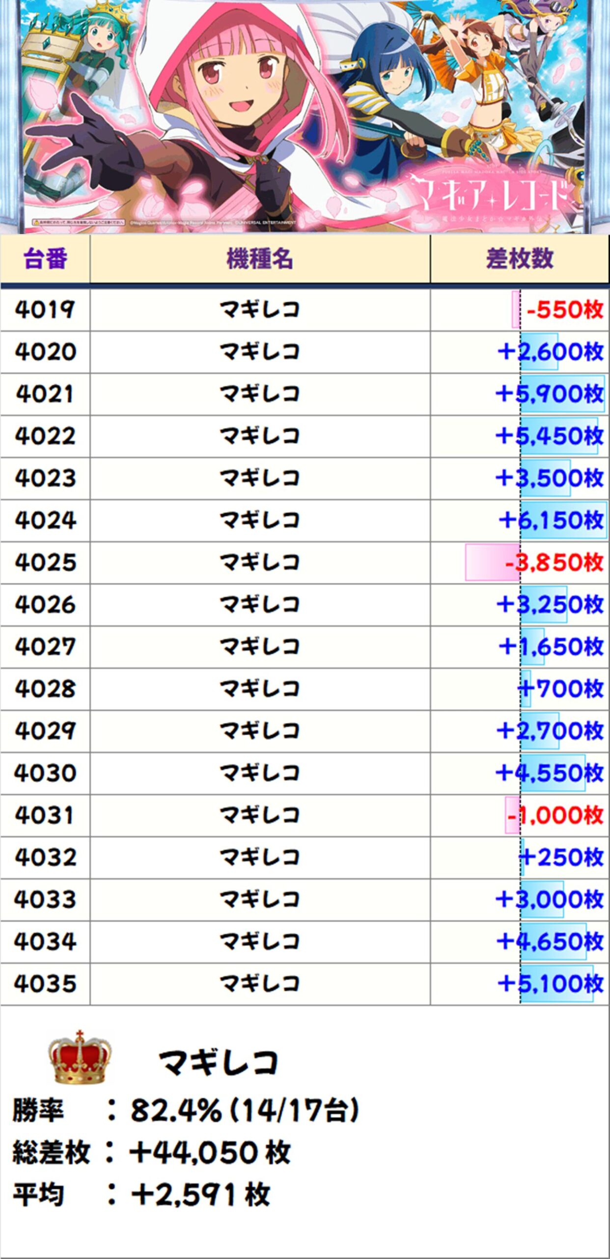 17台中14台プラス&平均+2,591枚と勝率・出玉ともに安定した好結果となりました!