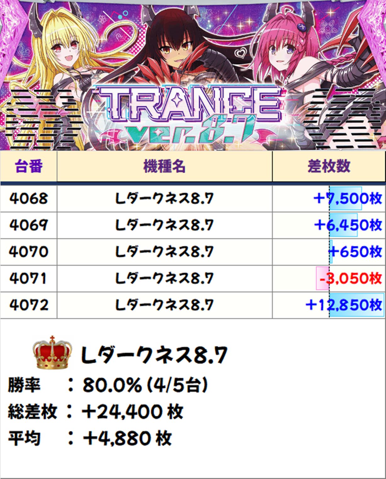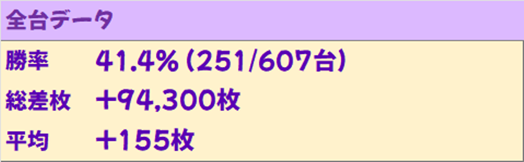 今回も6台並びを軸に特大並び・全台系・店舗独自仕掛け含めて優秀台が全体20%以上ある結果となりました。