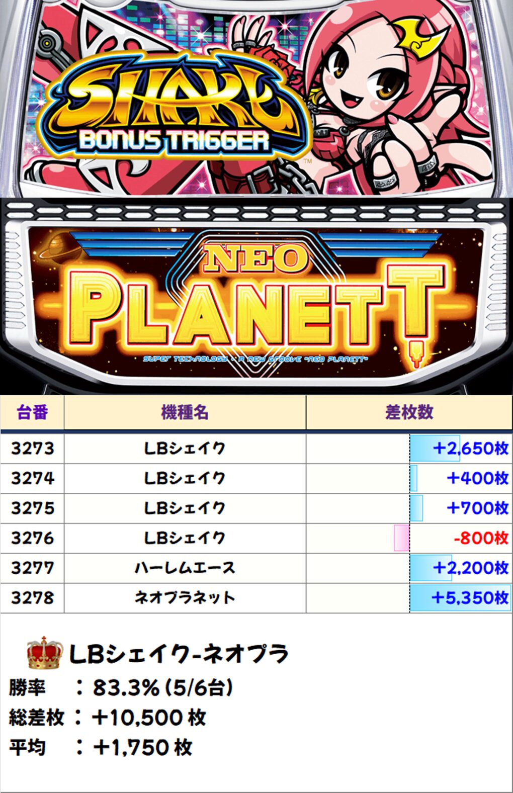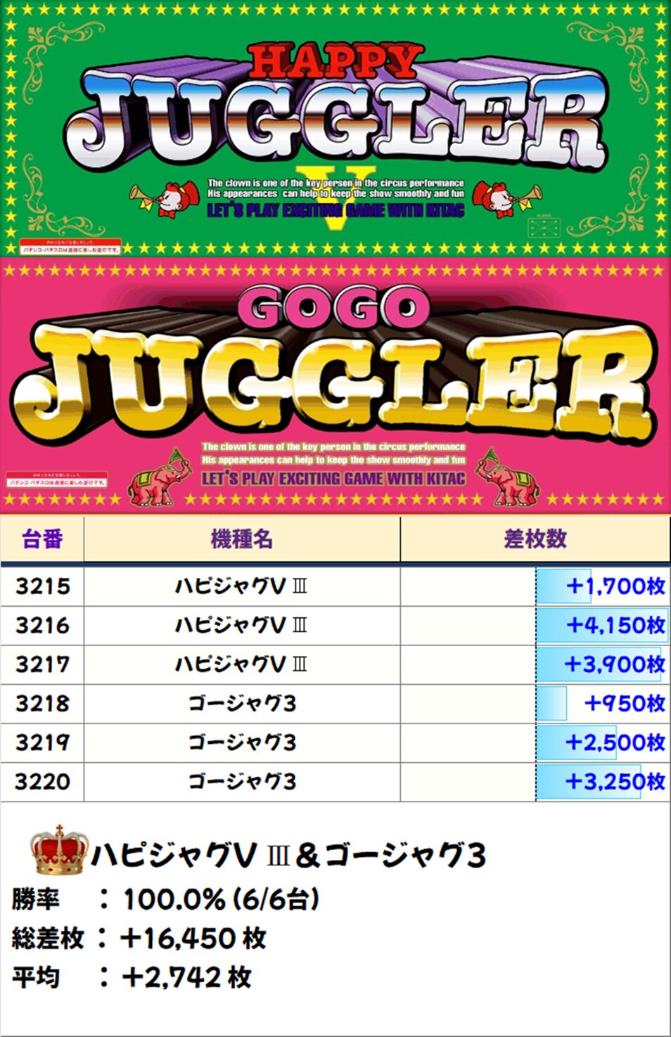 惜しくも1台マイナスでしたが、平均L3,525枚と優秀な結果となりました!