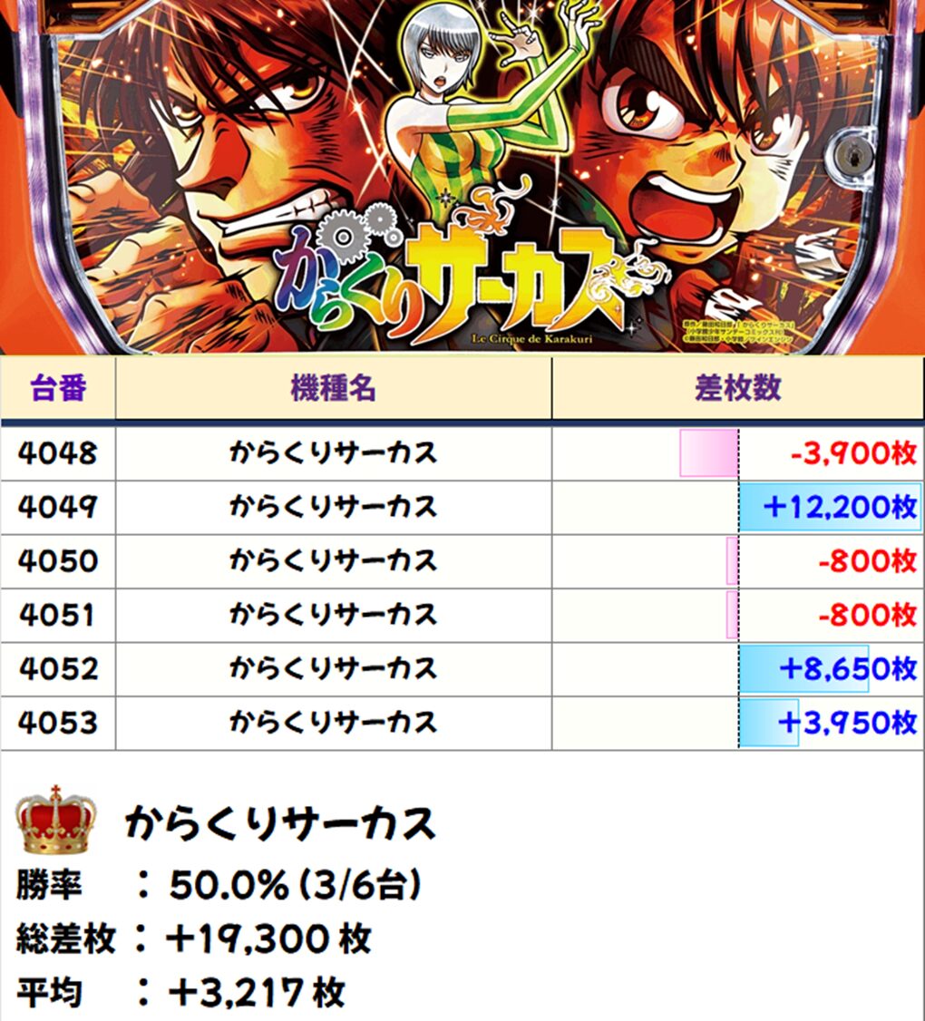 【6台並び⑤】からくりサーカス(4048-4053番台)【平均+3,217枚】