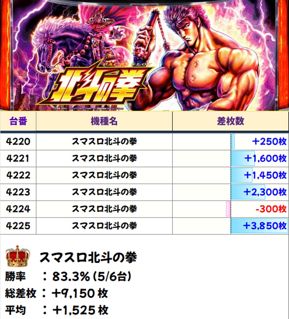 【6台並び⑦】スマスロ北斗(4220-4225番台)【平均+1,525枚】