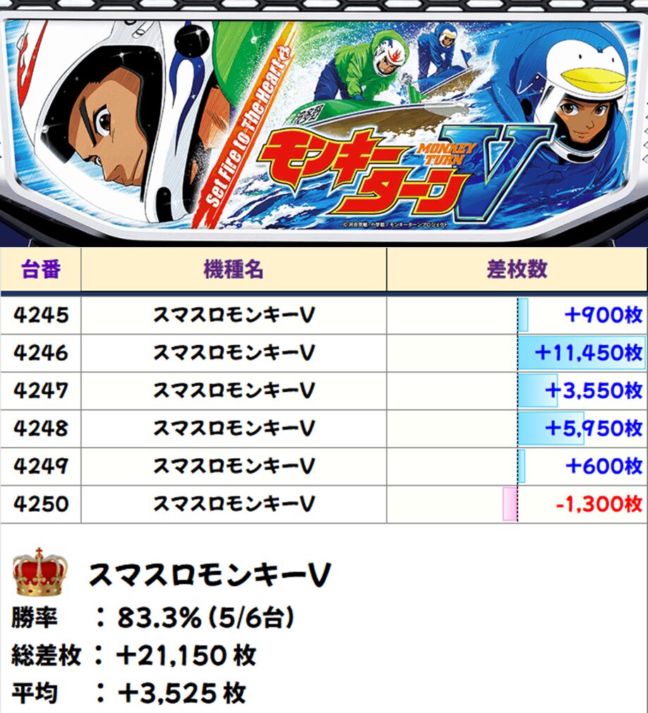 【6台並び⑧】スマスロモンキーⅤ(4245-4250番台)【平均+3,525枚】