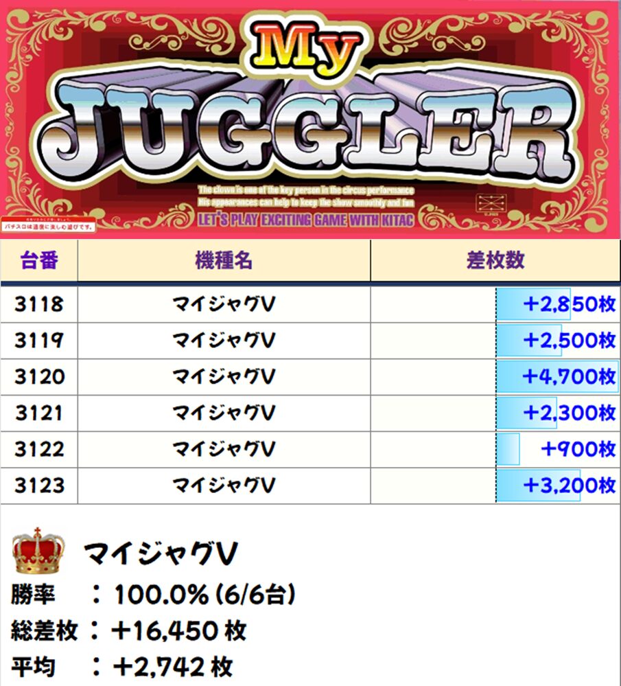 なんとシリーズ全18台オールプラス差枚!差枚数も申し分ない結果となりましたね!