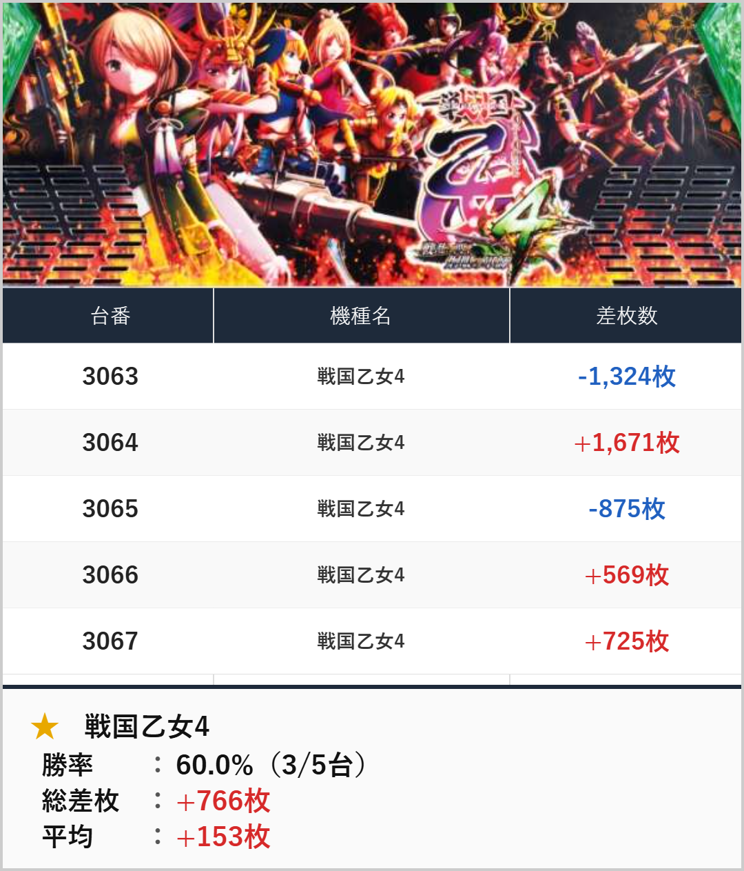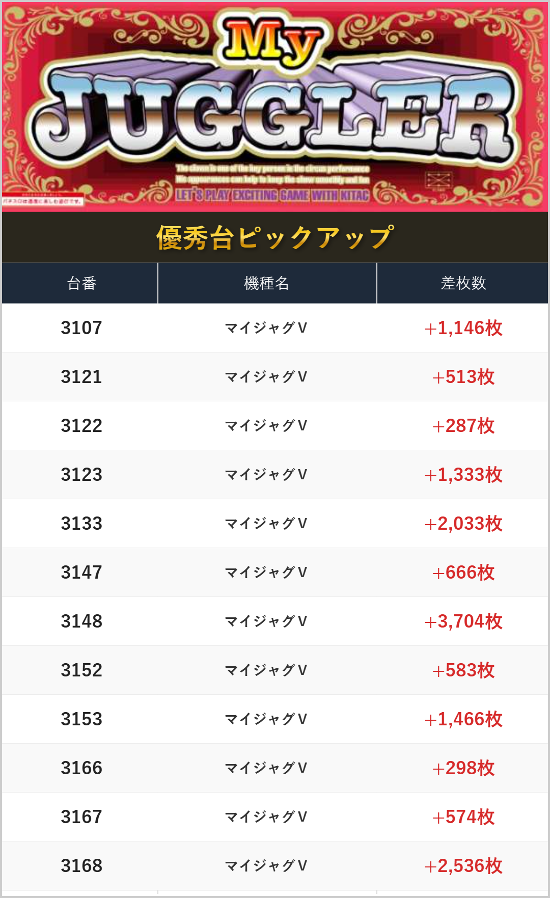 差枚数もしっかりと出ていました!