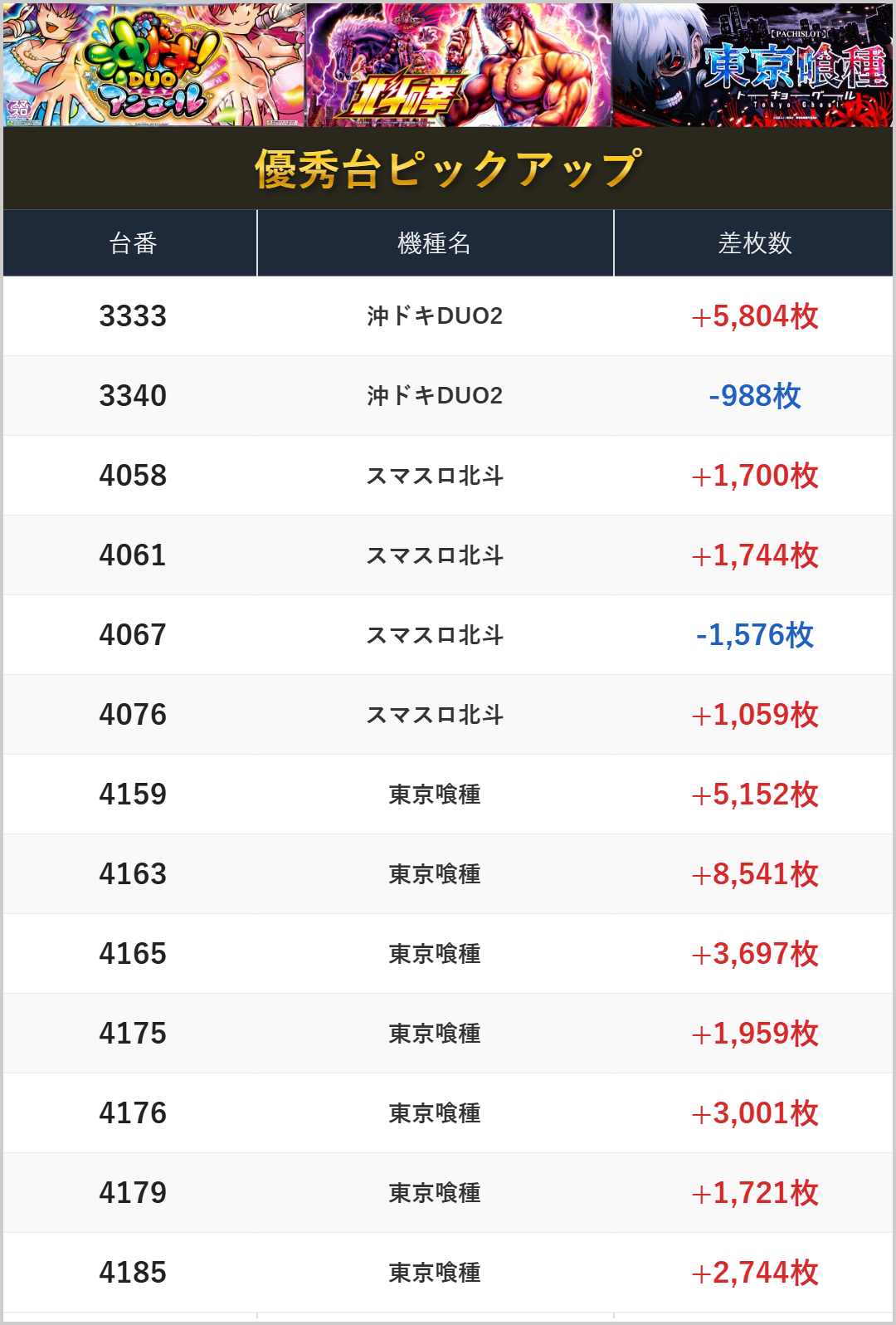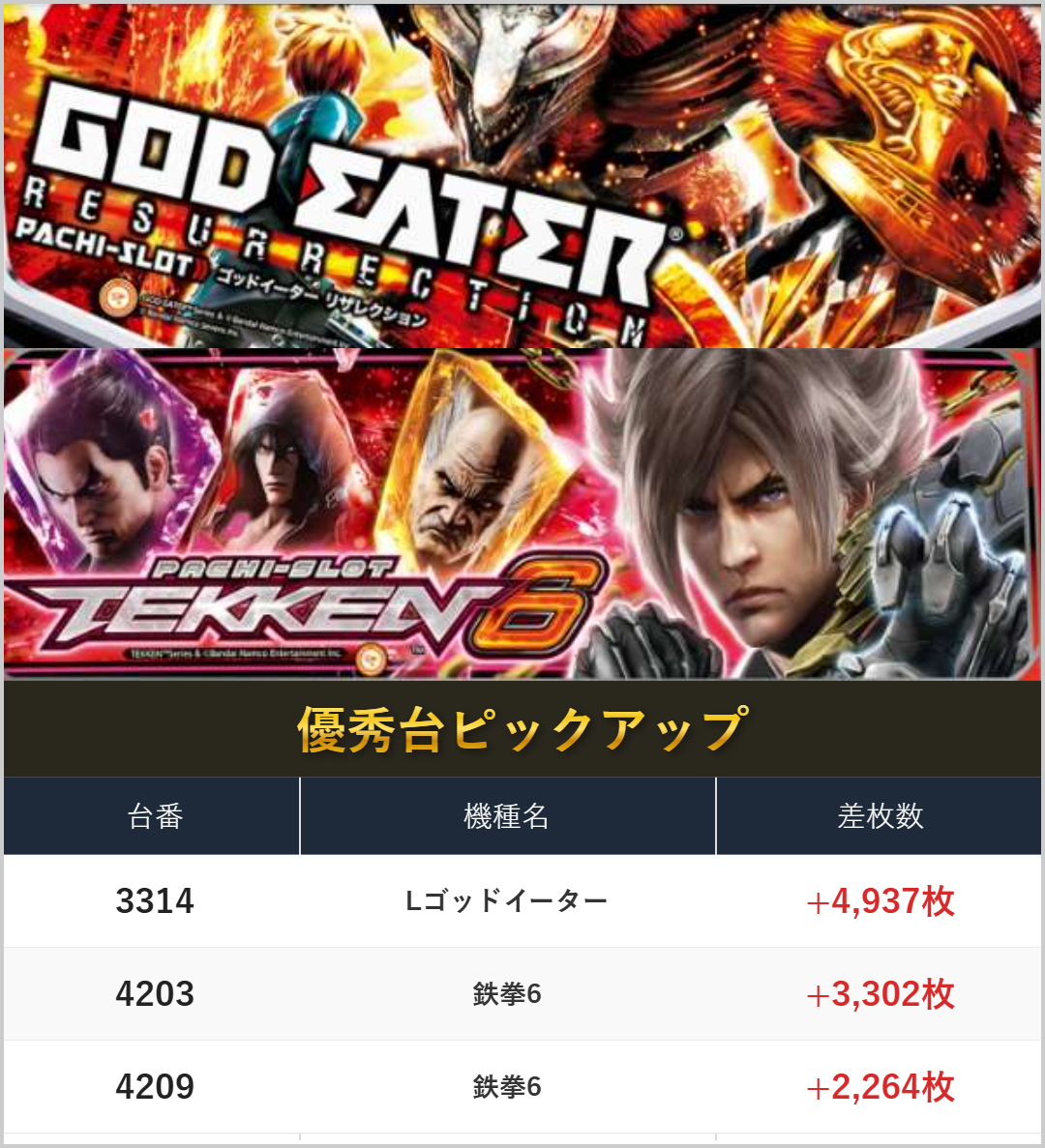 3メーカーのみならず、サミー機種にも優秀台が多数出現。