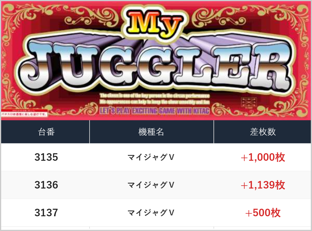 3台並び①:マイジャグⅤ(3135-3137番台)【平均+880枚】