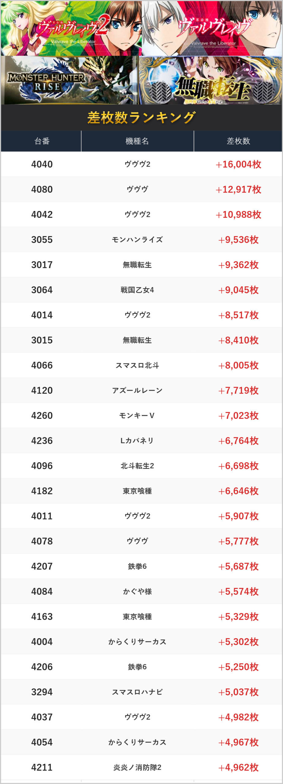 10,000枚OVER×2台、8,000枚OVERと大量出玉も多く確認。