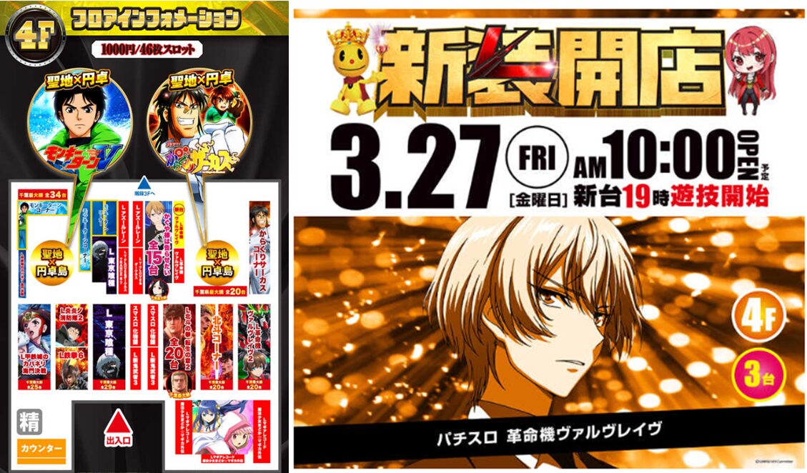 3月27日(金)│ピーアーク千葉駅前|金曜日施策×夜新装|SANKYO AREA71中心に3メーカーが好状況!先週同様、戦国乙女4が全台系!店舗独自の仕掛けも多数存在!