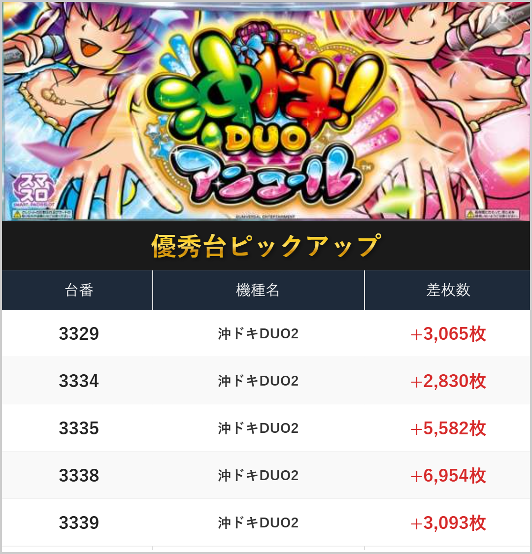 3台並びから3,000枚over、単品から2,000枚over×2台
