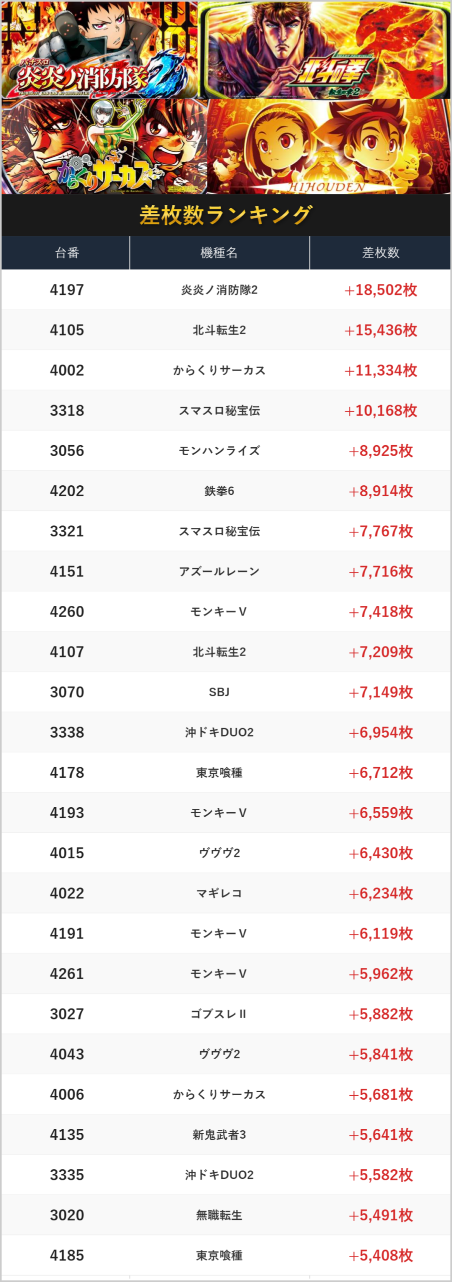 13台中8台プラス・7,000枚over、5,000枚overアリ