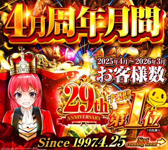 【ピーアーク千葉駅前】次回5つくも6台並び、さらには15台並びの特大仕掛け➡千葉最大級&NO0.1の仕掛けに期待ですね!