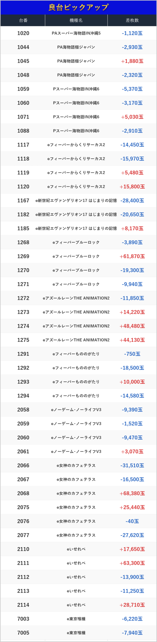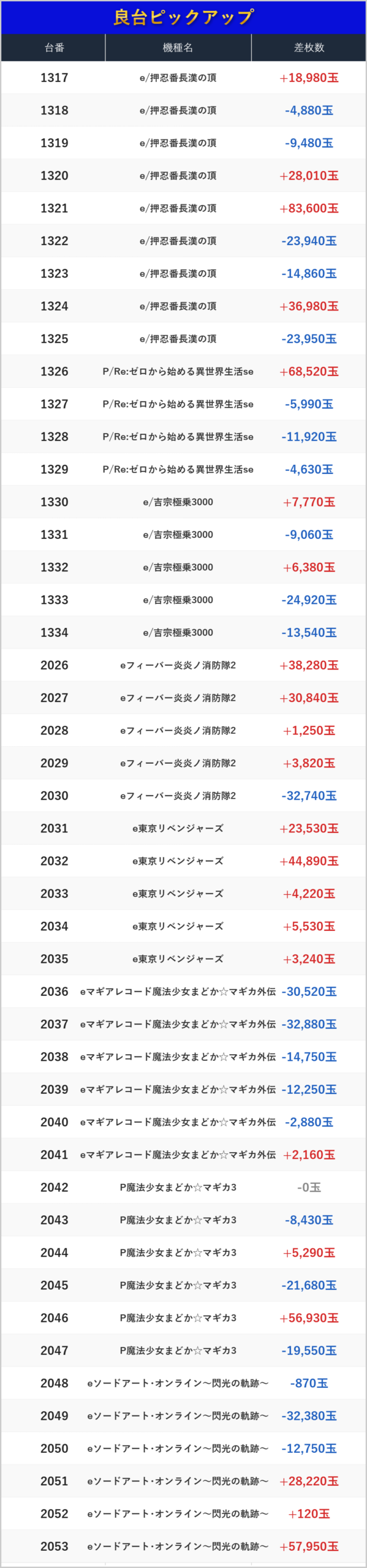 上記以外にもニブイチ・サブイチの高配分機種が多数存在。