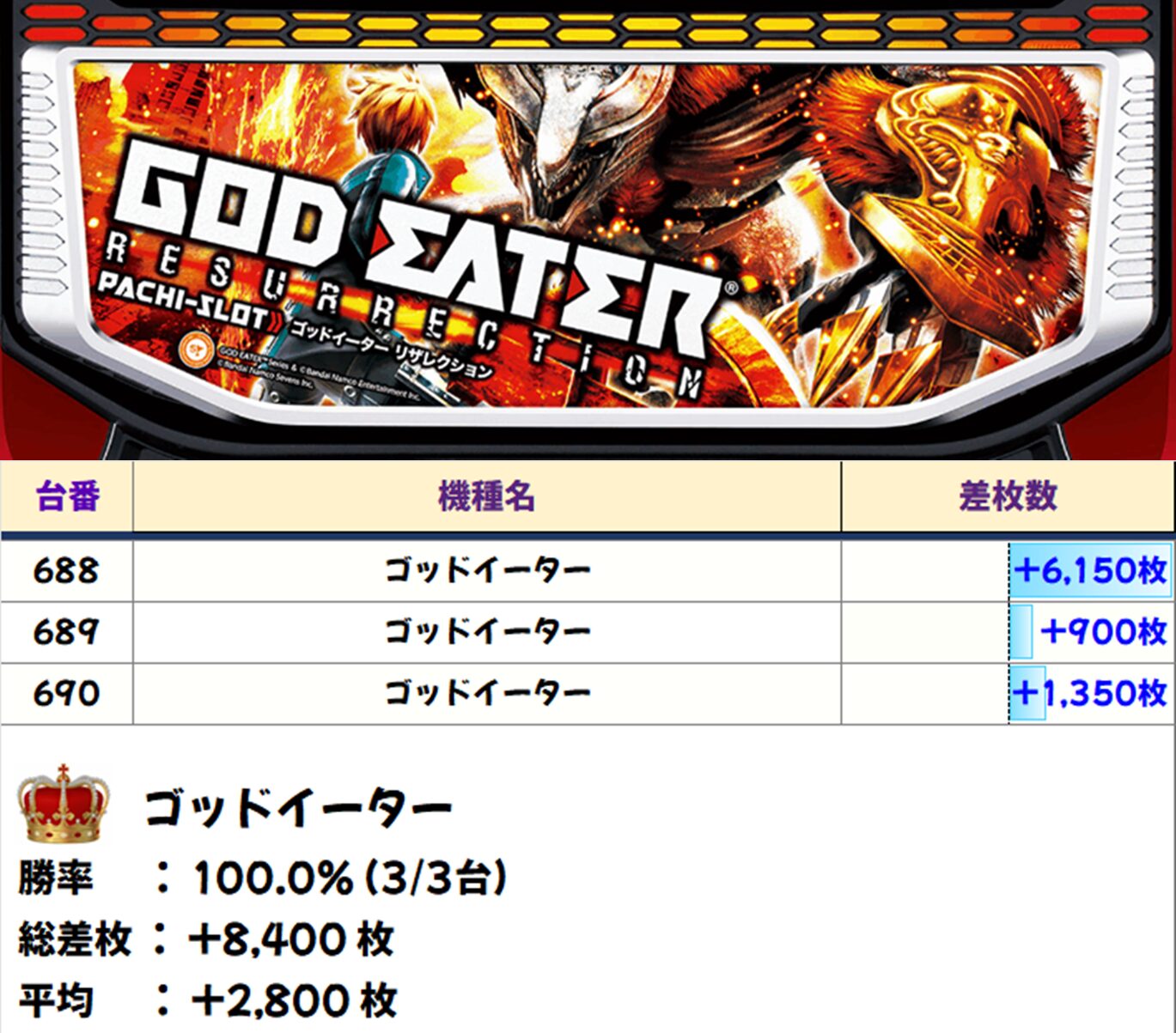 高配分:ゴッドイーター(3/3台+)【平均+2,800枚】