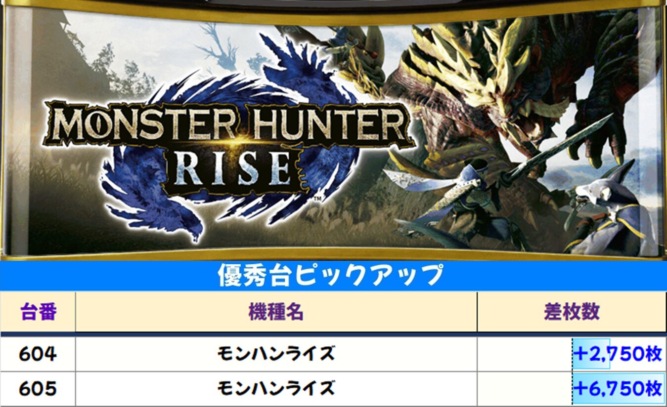 高配分:モンハンライズ(2/4台+)【平均+1,538枚】