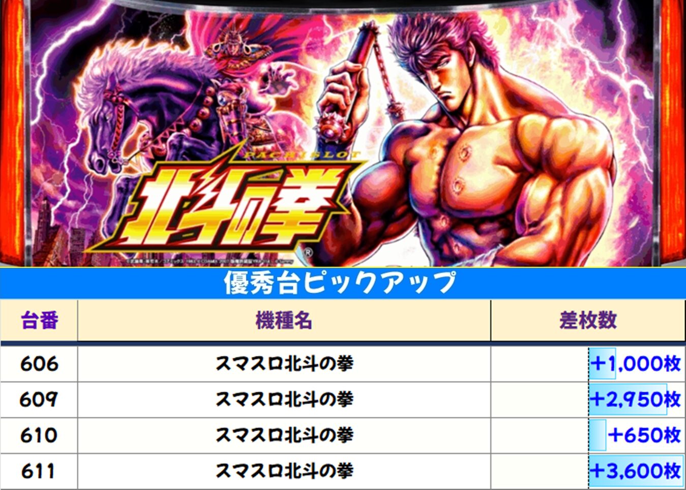 青エリアにも仕掛けアリ! 【モンハンライズ】と【スマスロ北斗の拳】が高配分。赤エリアと同じく青エリアにも最高設定or準最高設定台が多数あったでしょうね。
