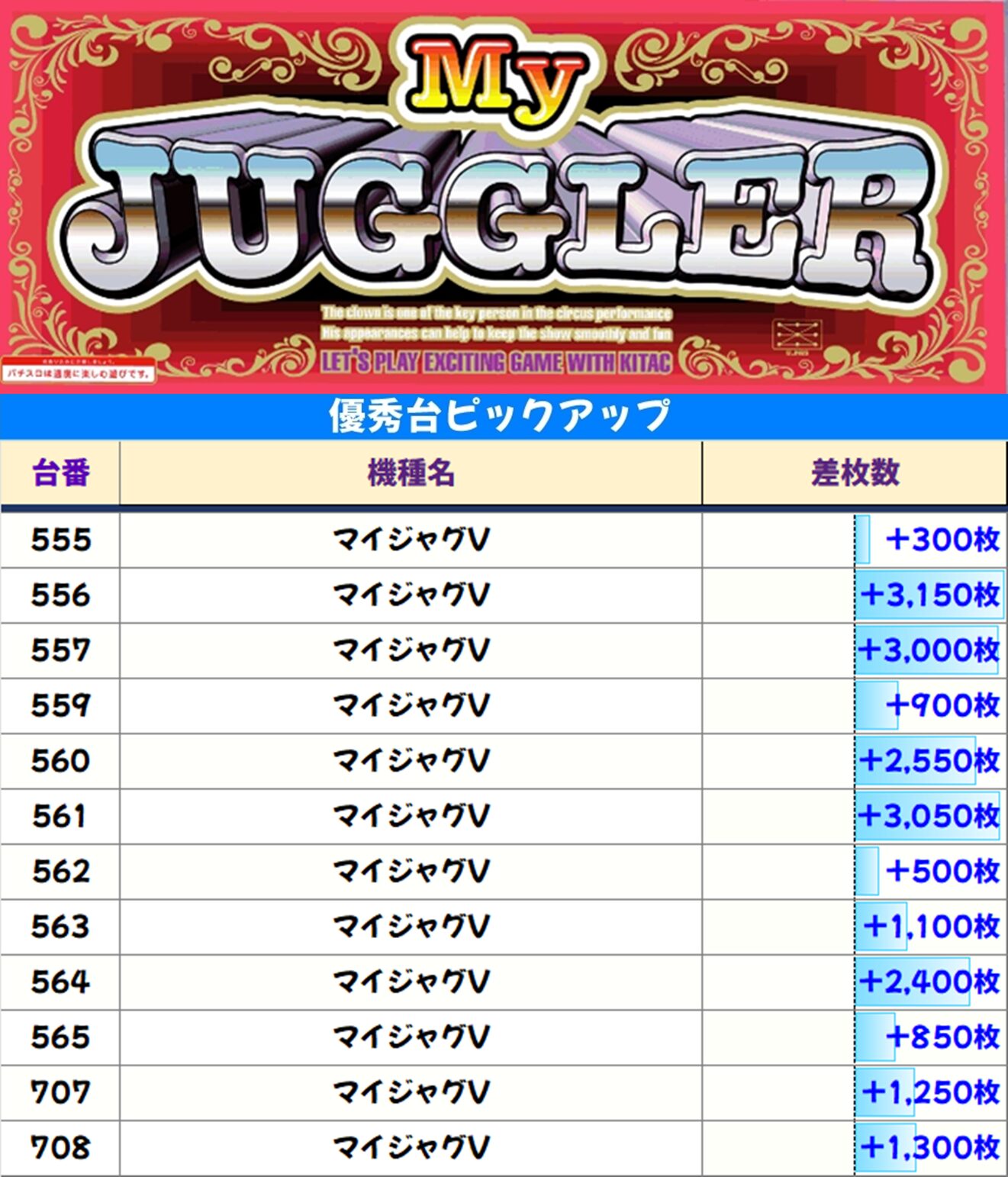11月の月イチ周年日は【マイジャグV】が全台系というド派手な仕掛けを筆頭に仕掛け満載の1日でしたね。当然のように大爆発台&優秀台が至るところから出現。大いに盛り上がりました!