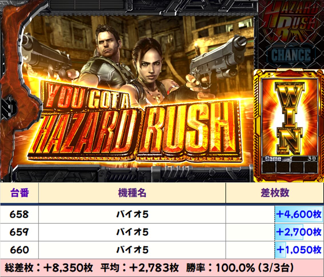 高配分:バイオ5(3/4台+)【平均+1,738枚】