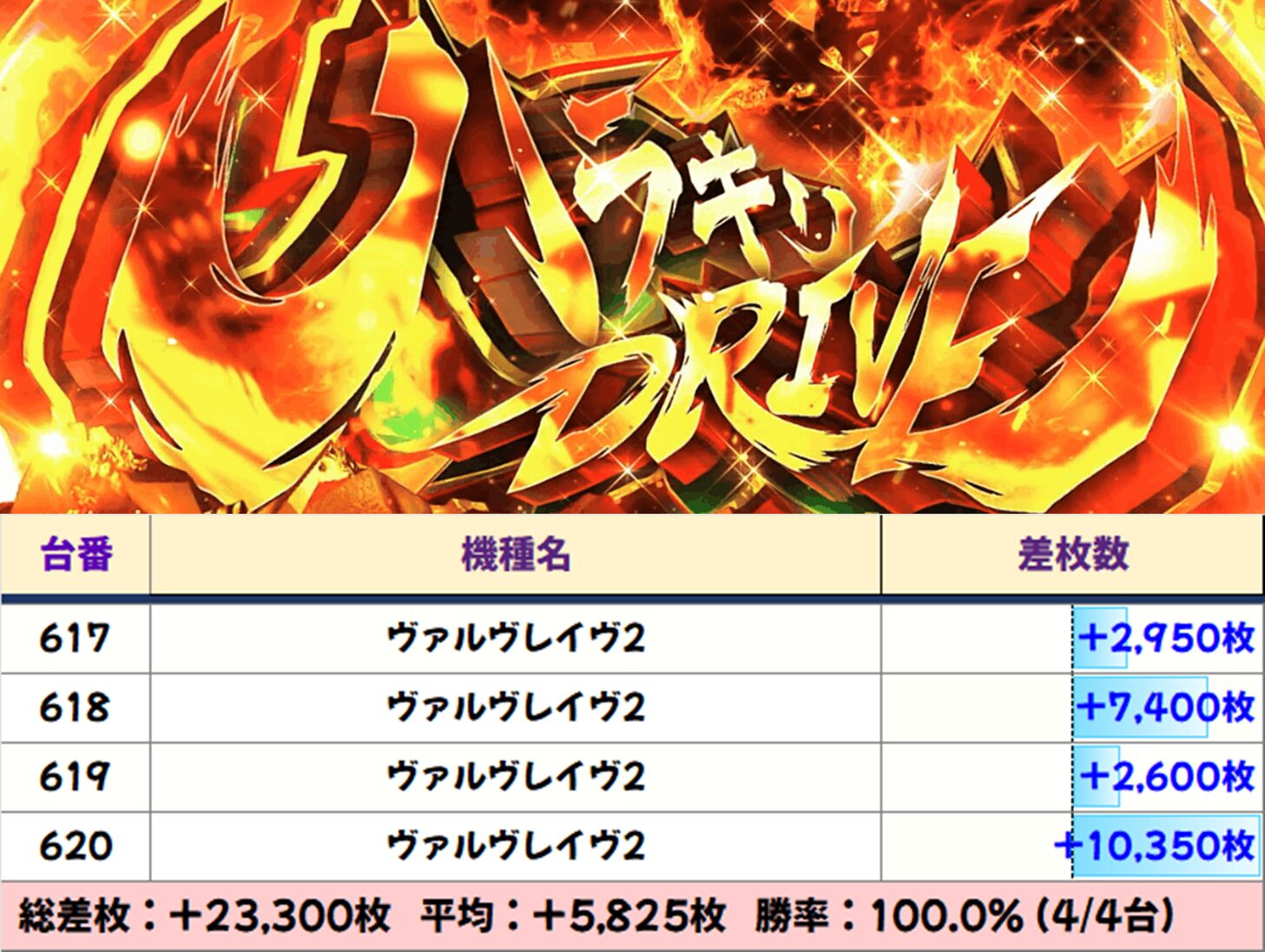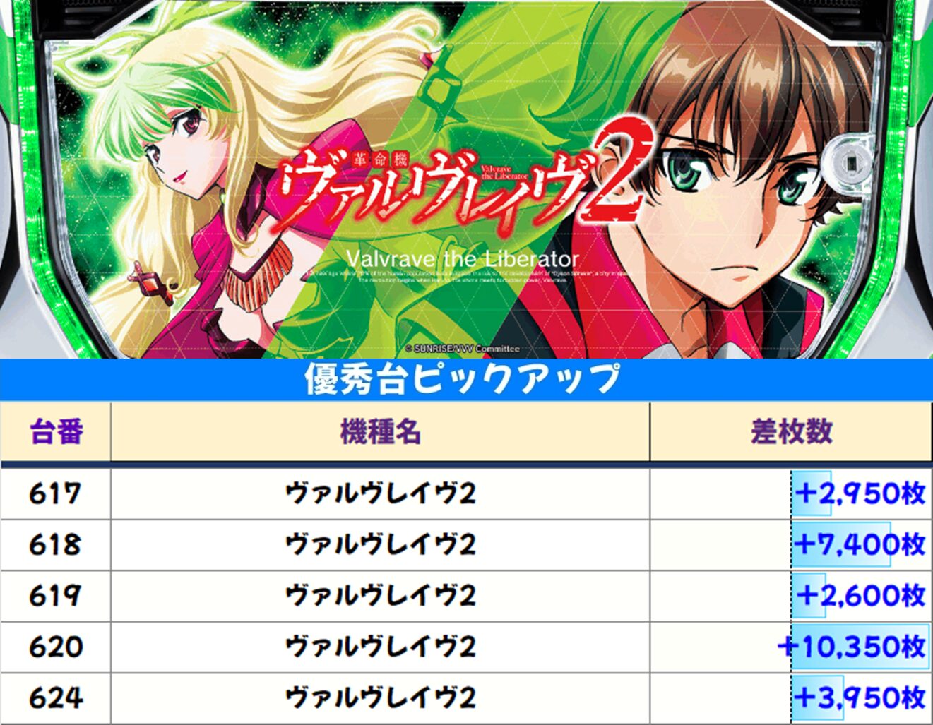 4台並び:ヴァルヴレイヴ2【平均+5,825枚】