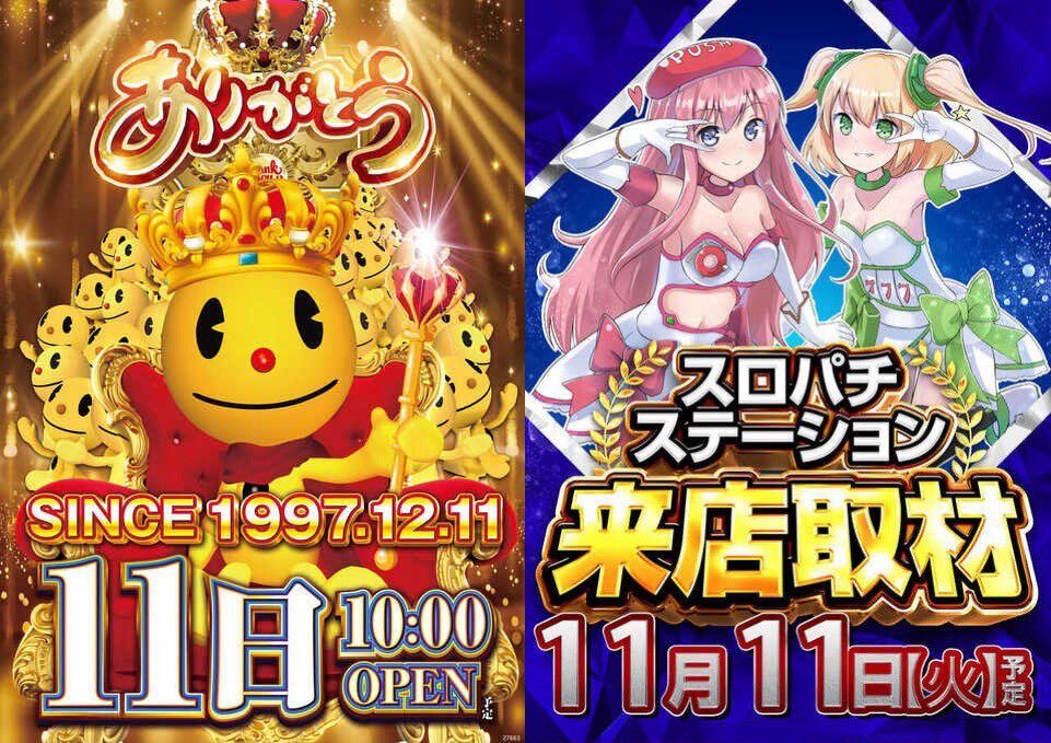 いよいよ来月の11日が本周年日! 月イチ周年日2回連続で強烈な全台系が出現しましたが本周年日は…? 月イチ周年日を上回る仕掛けがあるはずなので、打ち手にとって外せない1日になること間違いナシ! 今から12/11の予定を空けておいたほうがいいと思いますよ!