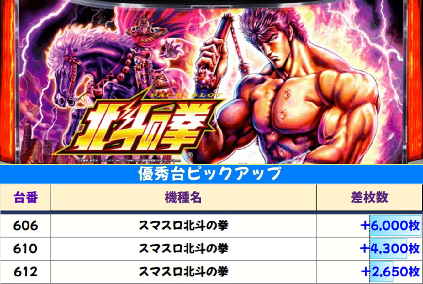 高配分:スマスロ北斗の拳(4/7台+)【平均+1,293枚】