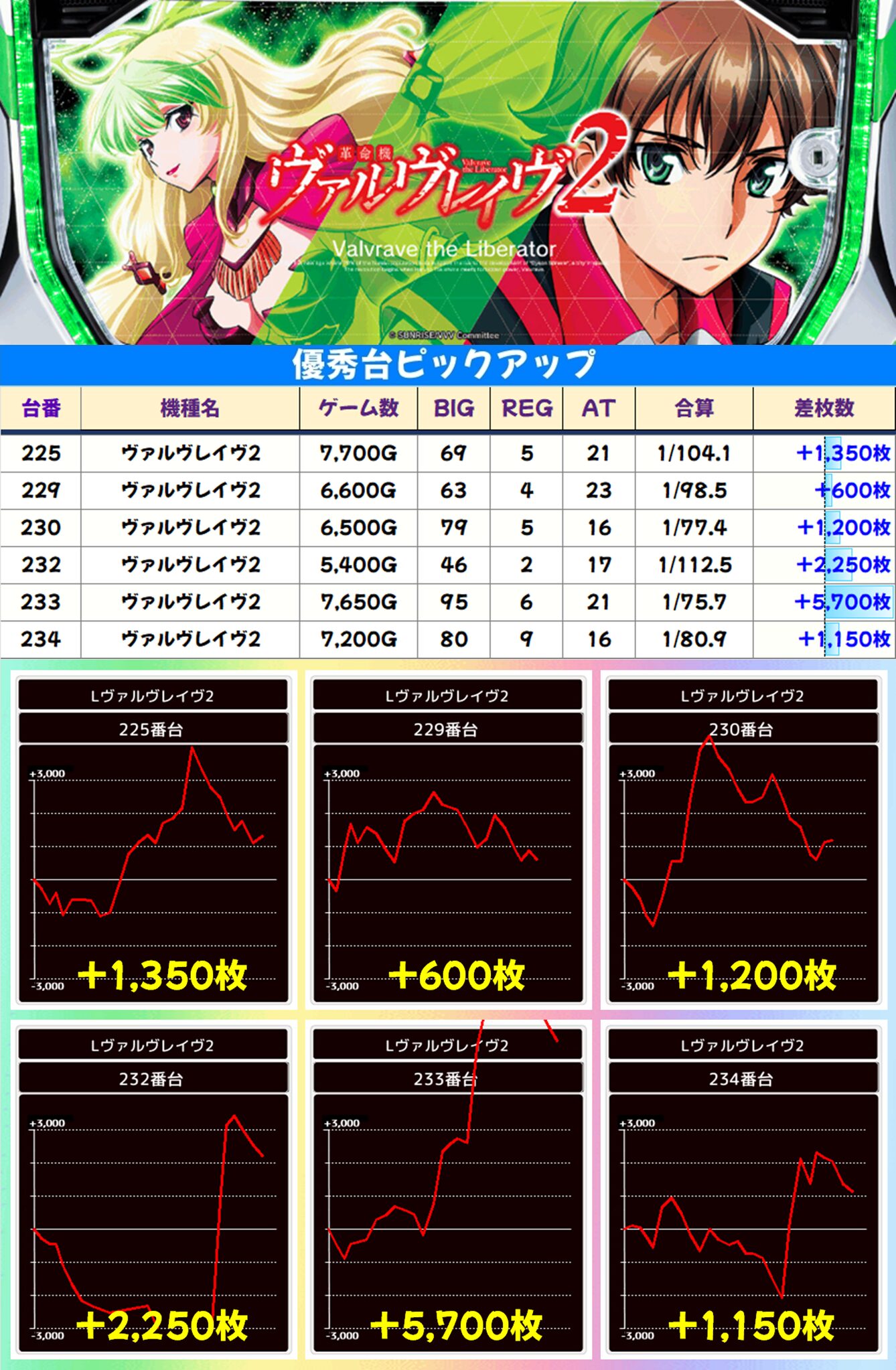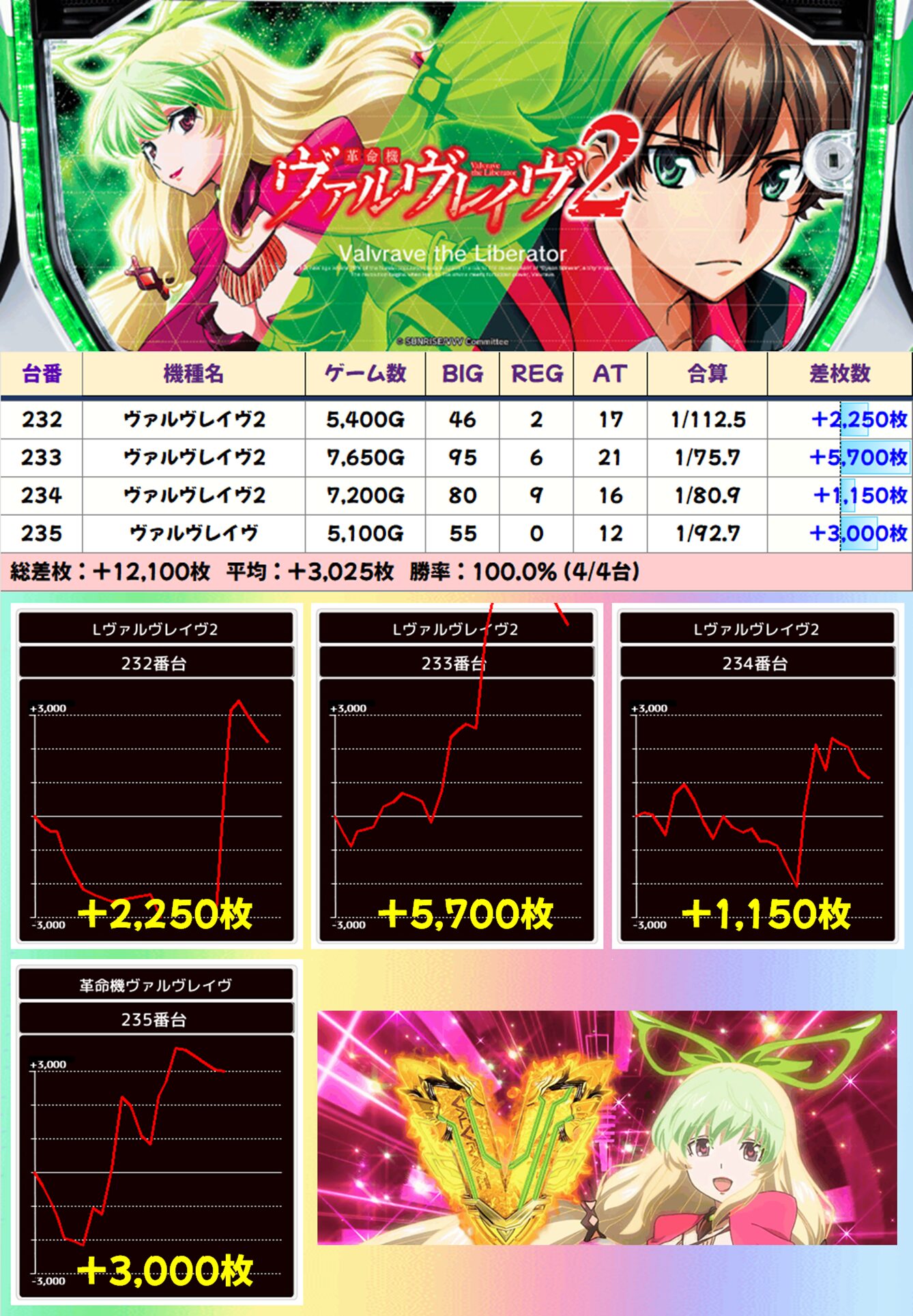 4台並び:ヴァルヴレイヴ2+ヴァルヴレイヴ【平均+3,025枚】
