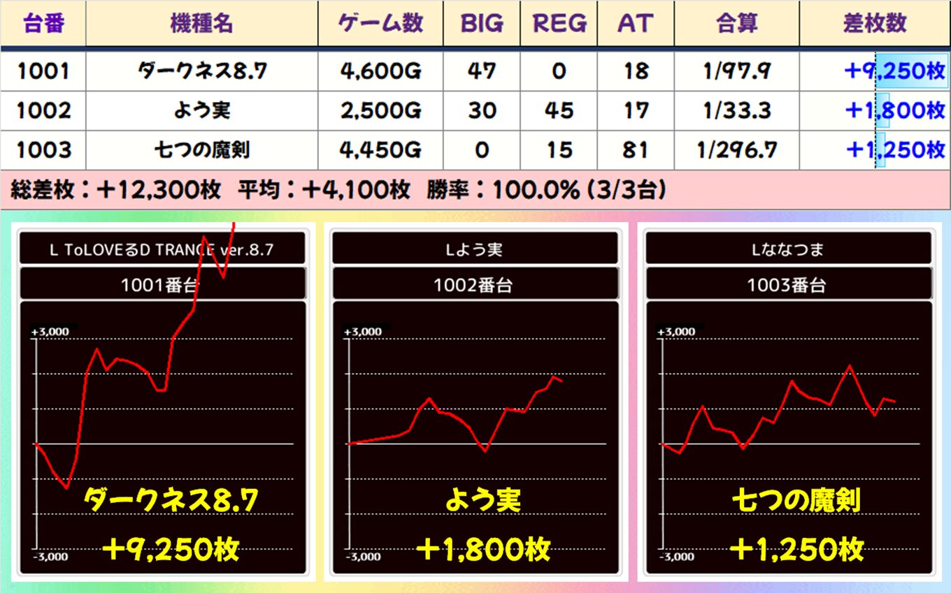 3台並び:ダークネス8.7~七つの魔剣【平均+4,100枚】