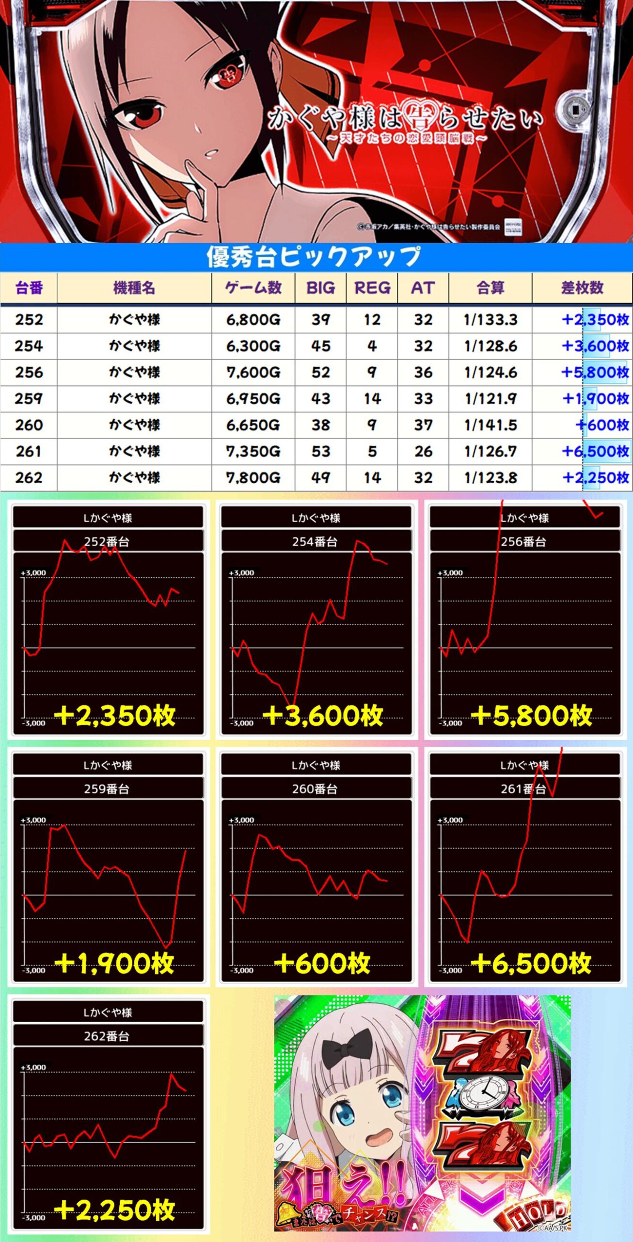 高配分:かぐや様(7/11台+)【平均+1,286枚】