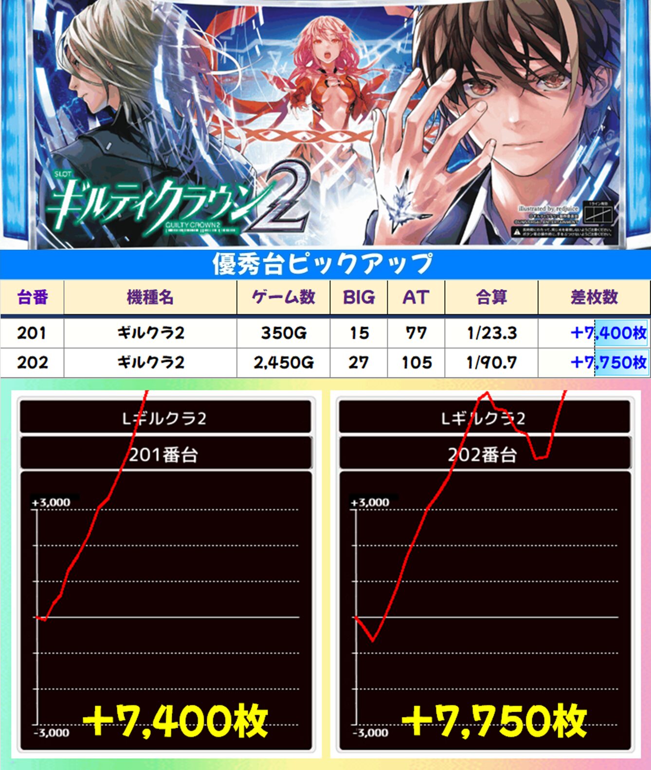 高配分:ギルクラ2(2/4台+)【平均+3,688枚】