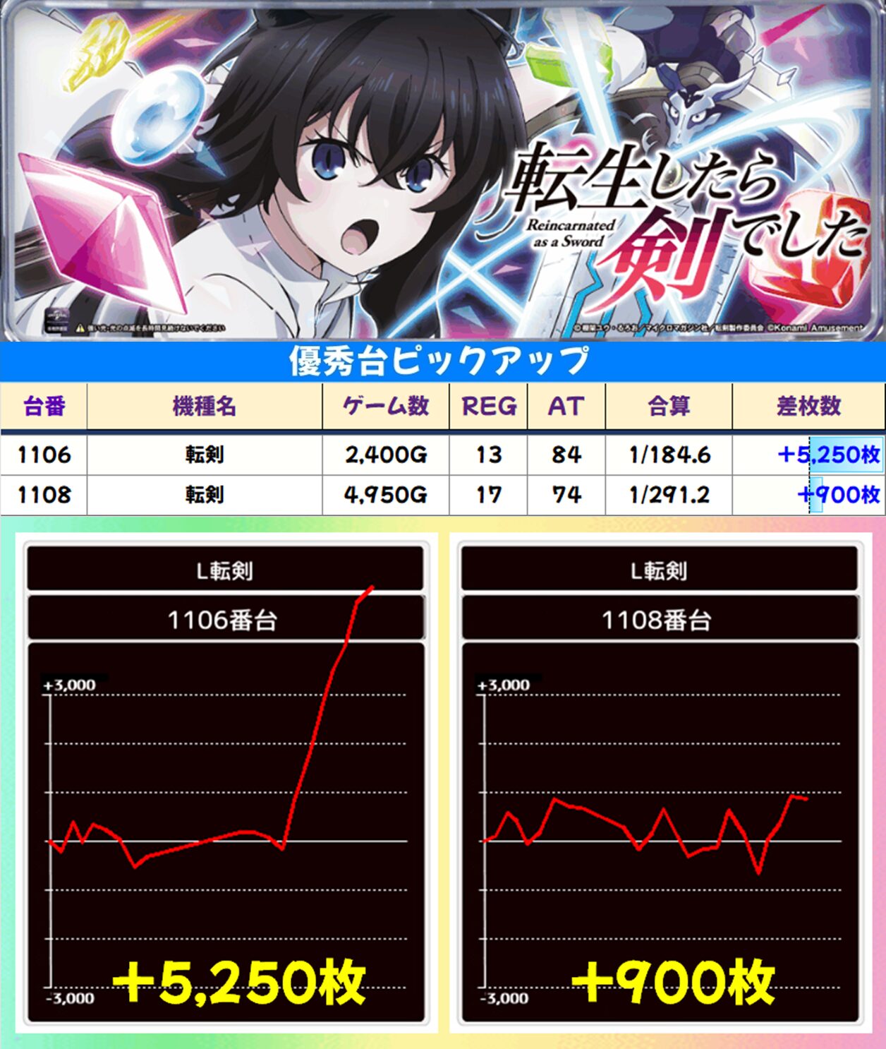 高配分:転剣(2/3台+)【平均+1,867枚】