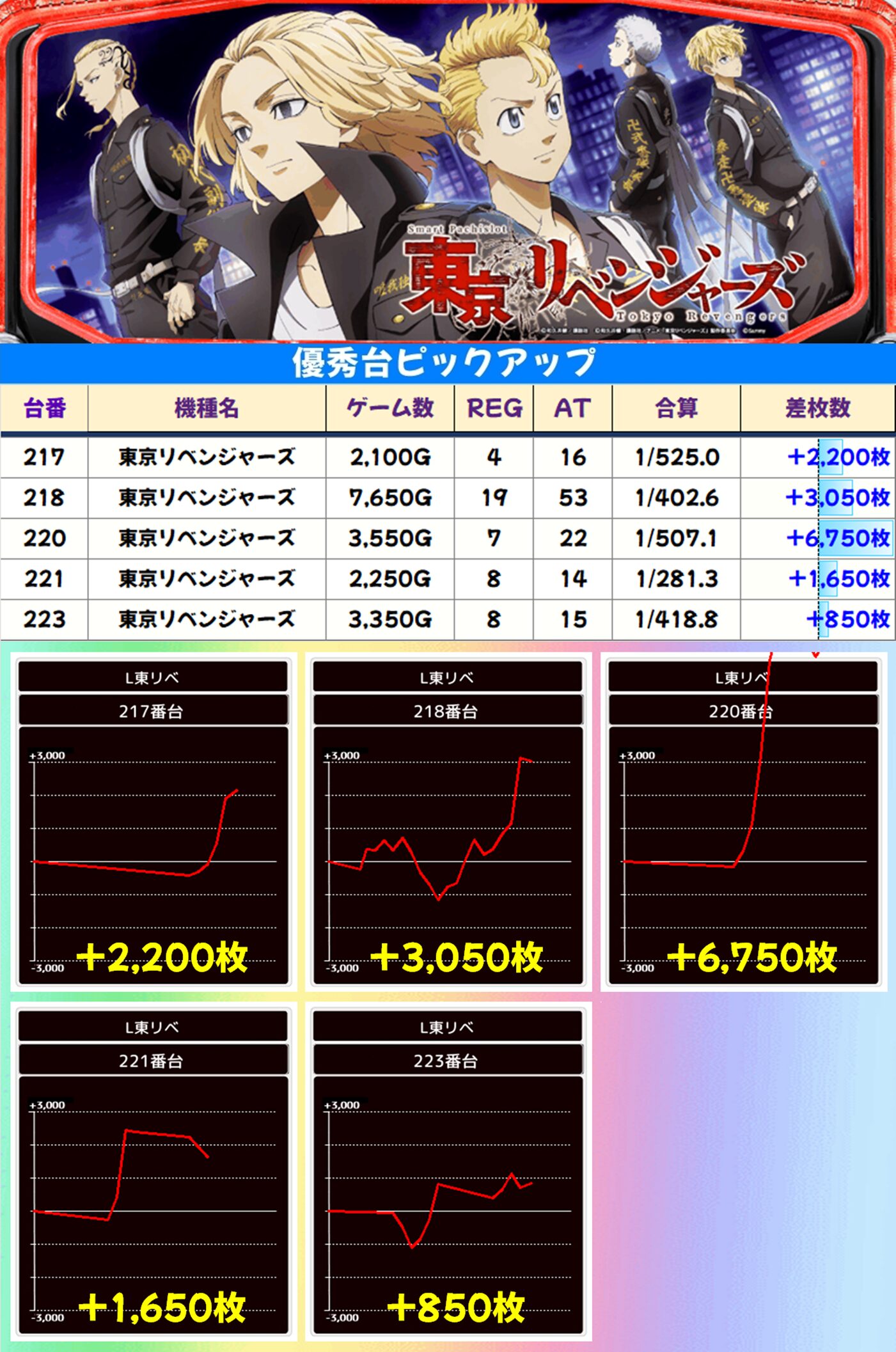 高配分:東京リベンジャーズ(5/8台+) 【平均+1,444枚】