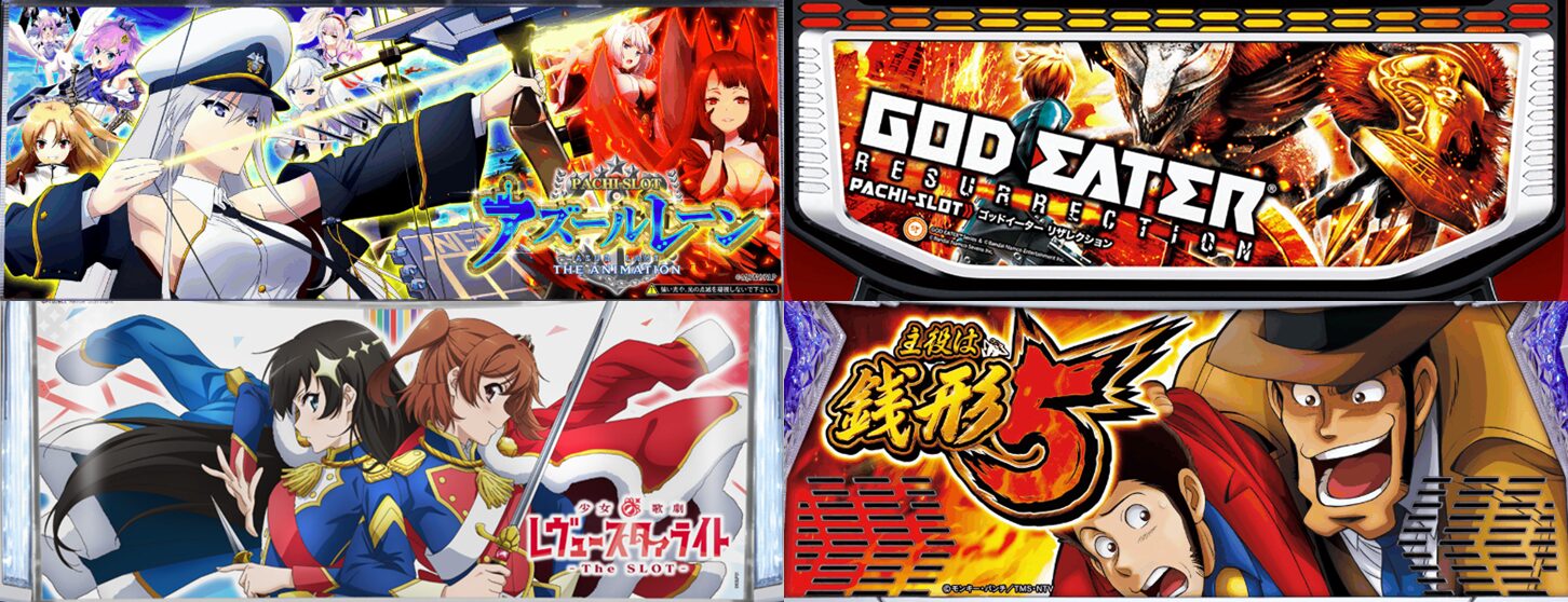 本日は【レヴュースタァライト】【主役は銭形5】の2機種が全台系濃厚、【絶対衝激IV】【アズールレーン】【東京リベンジャーズ】【アレックスB】【スマスロ秘宝伝】の5機種が高配分。高品質なお宝台が投入された仕掛けだったので、各機種から爆発台が出現しました。